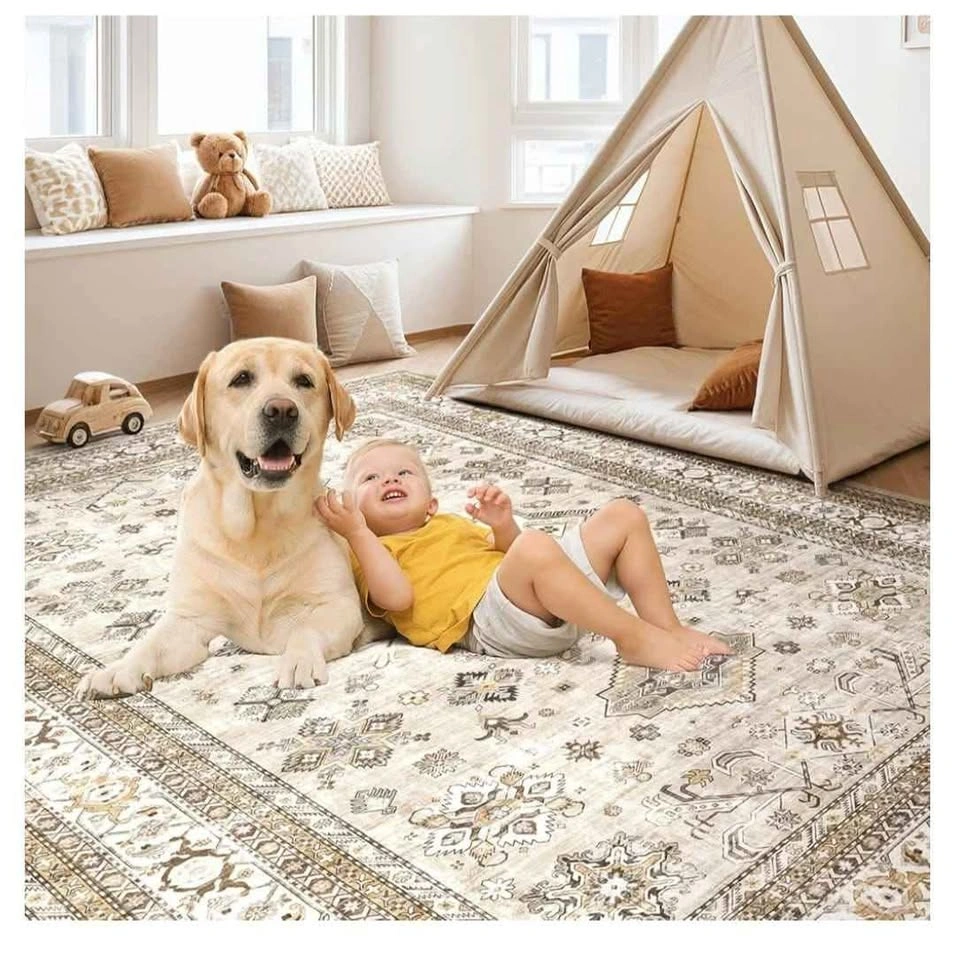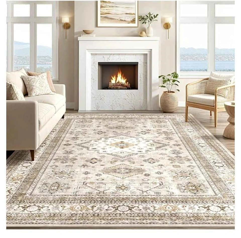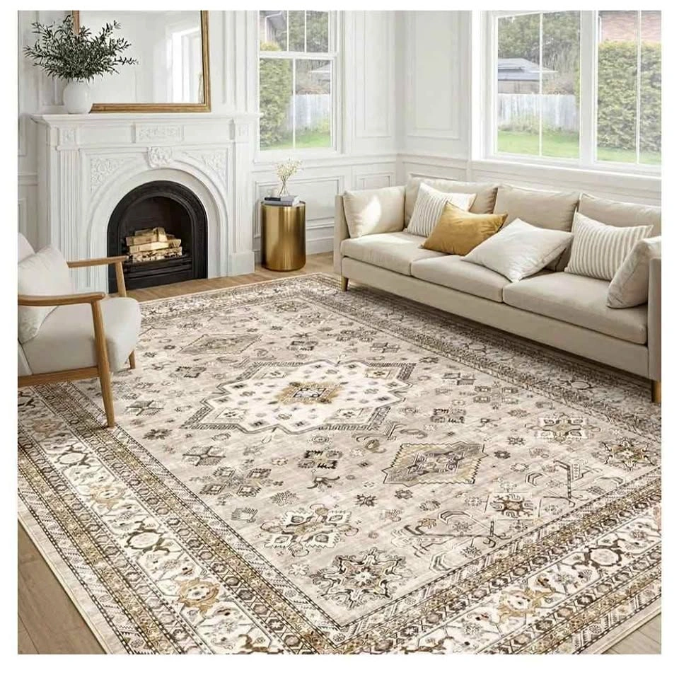 Living Room Area Rug 9x12 - Large Soft Washable Oriental Traditional Distressed Farmhouse Rugs for Bedroom - Indoor Floor Accent Carpet for Home Office House Decor - Beige #5