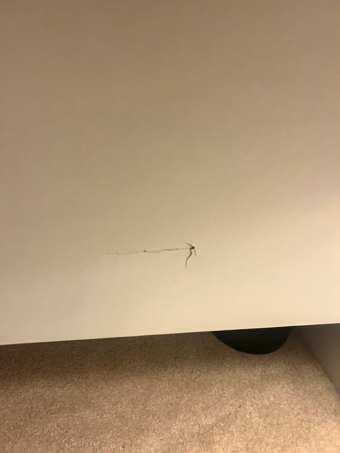 Selling a used office desk with a curved design. It's a sturdy Wayfair desk perfect for a home office or workspace. There is a small crack on the side as shown in the picture.