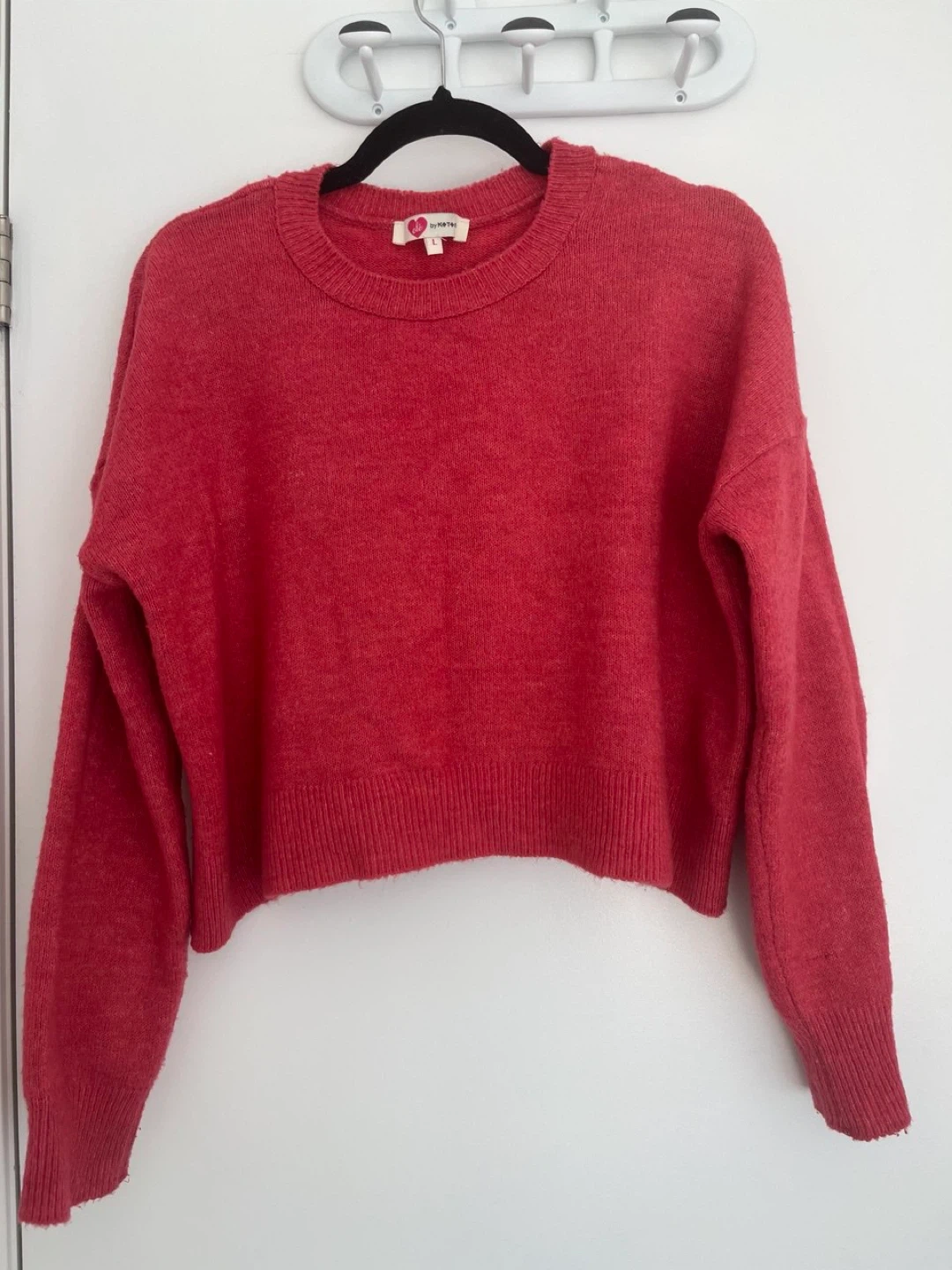 10Cozy red knit sweater from Heart Tree in size large! It's in great condition and ready for a new home. Perfect for staying warm and stylish this season