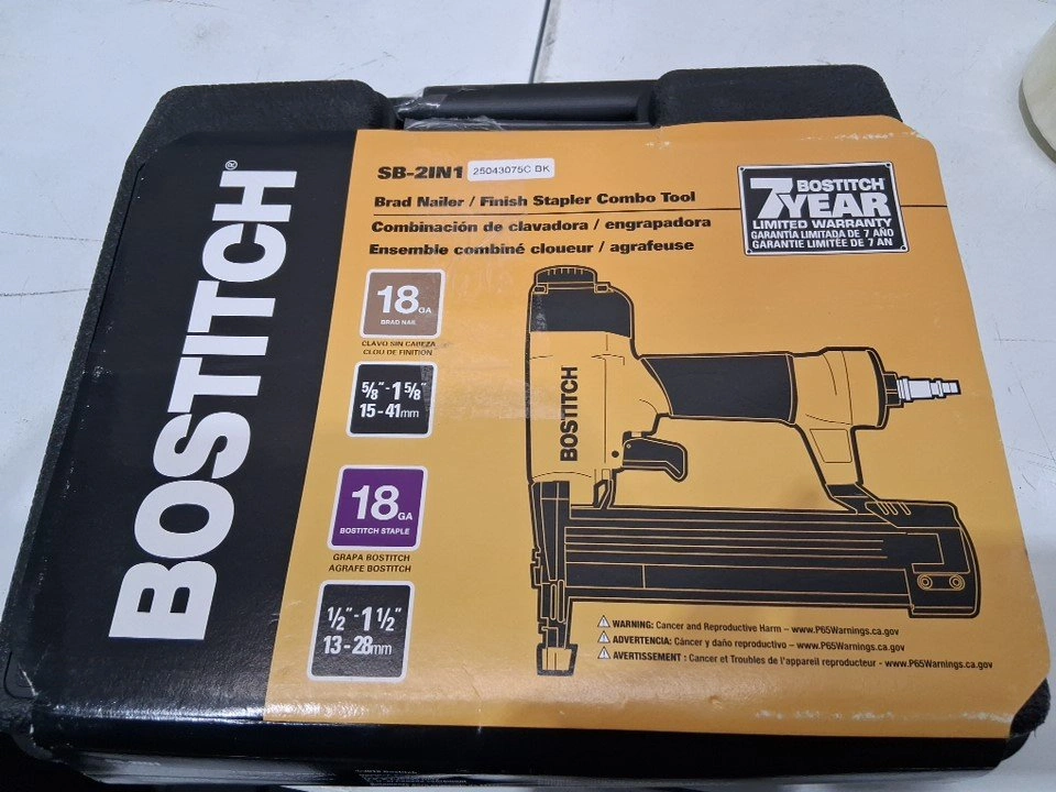 10bostitch 2-in-1 pneumatic narrow crown stapler & brad nailer kit with carrying case - 18 gauge 5/8" to 1-5/8" & 7/32" crown 1/2" to 1-1/2" (model: sb-2in1)
