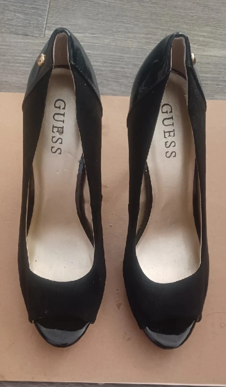 Selling a pair of Guess black heels in size 7.5 M. They're in great condition and would be a stylish addition to any outfit!