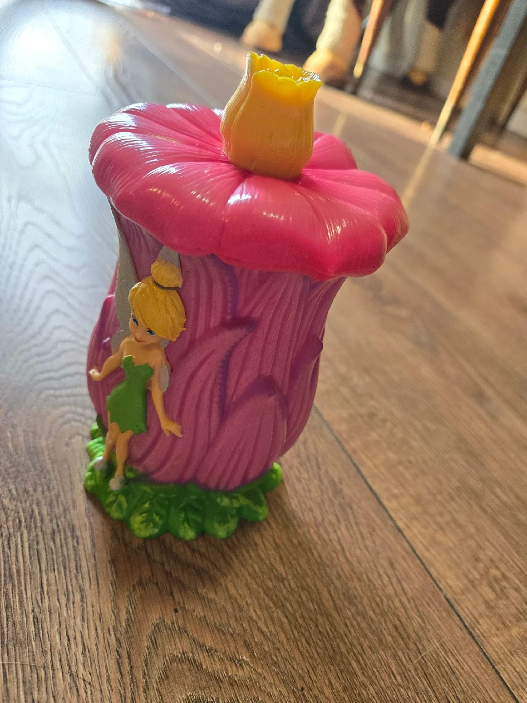 A charming Disney Fairies Tinkerbell flower mug! It's in great shape and features a lovely pink flower design with Tinkerbell herself. Perfect for adding a touch of magic to your morning coffee or tea