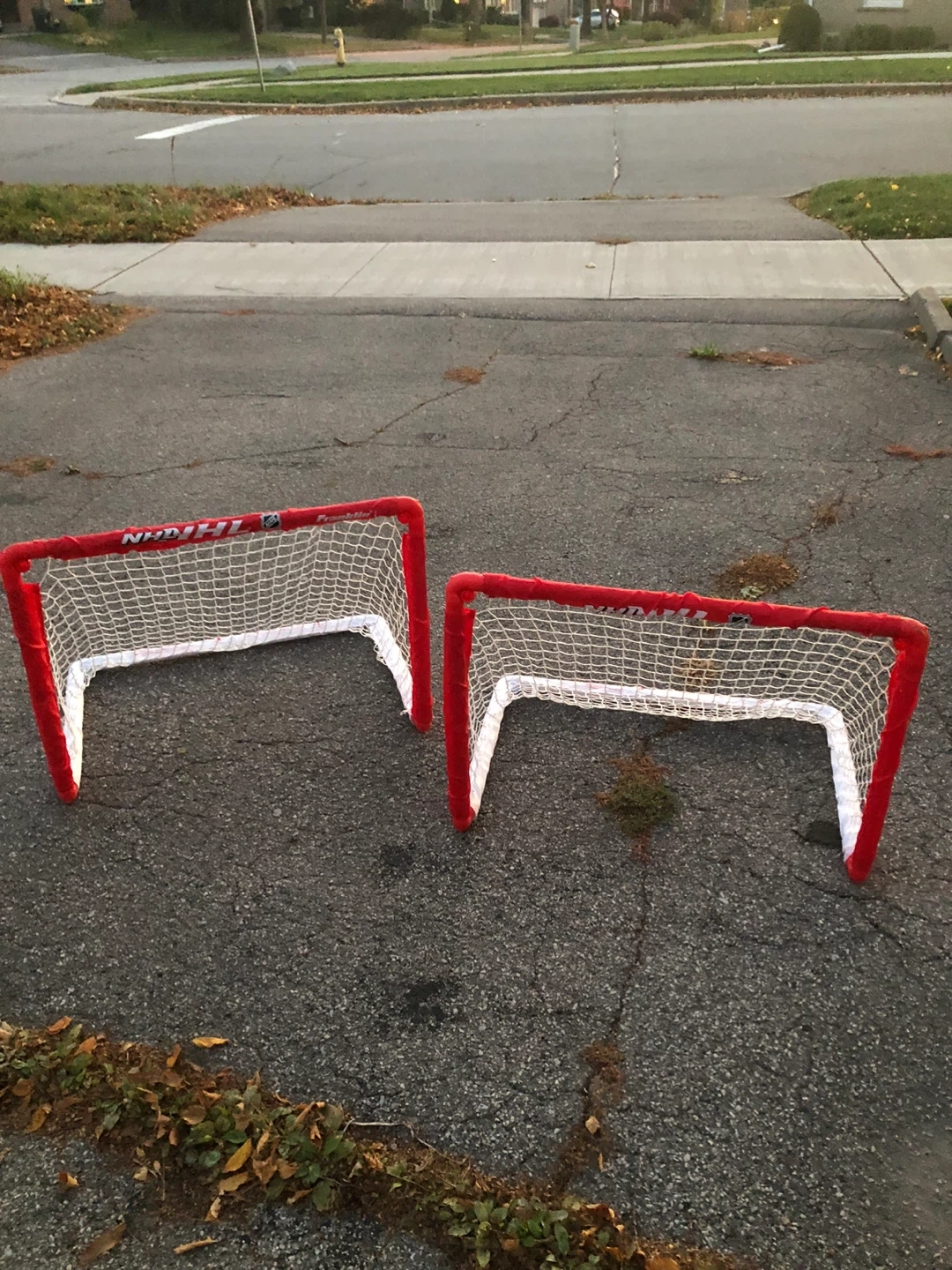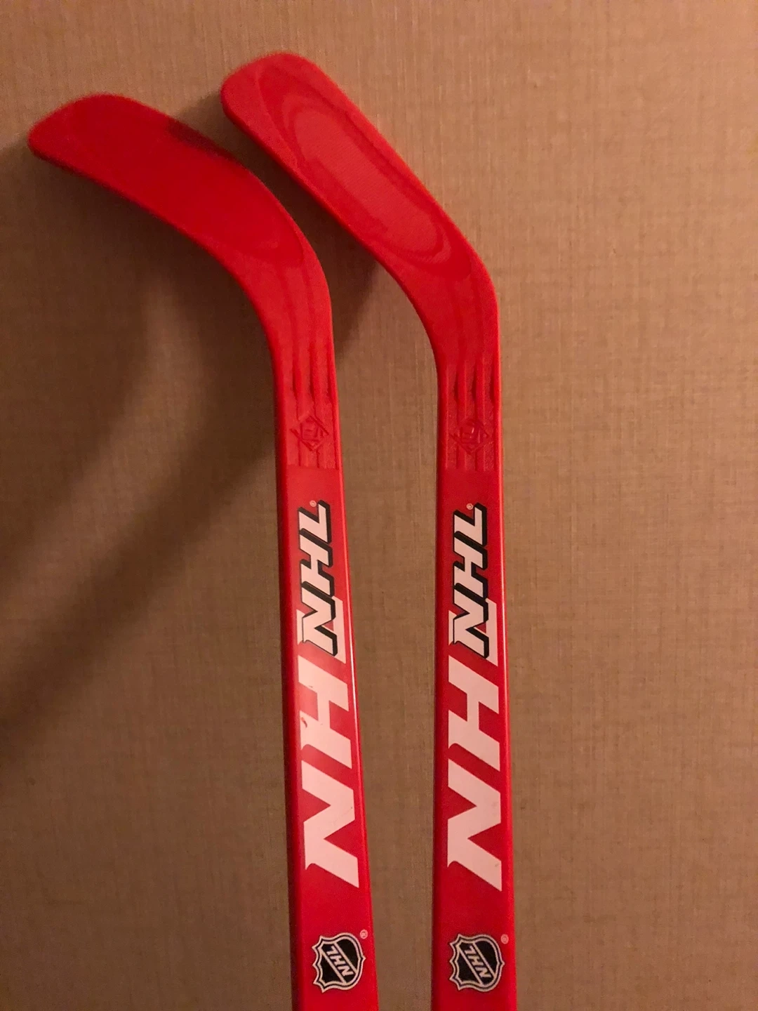 228Selling a set of NHL-branded hockey sticks and mini nets. Perfect for some fun hockey practice at home or on the driveway! The sticks are red and feature the NHL logo prominently. The mini nets are also red and come as a pair. Great for kids getting into hockey or for a fun game with friends All sales are final.