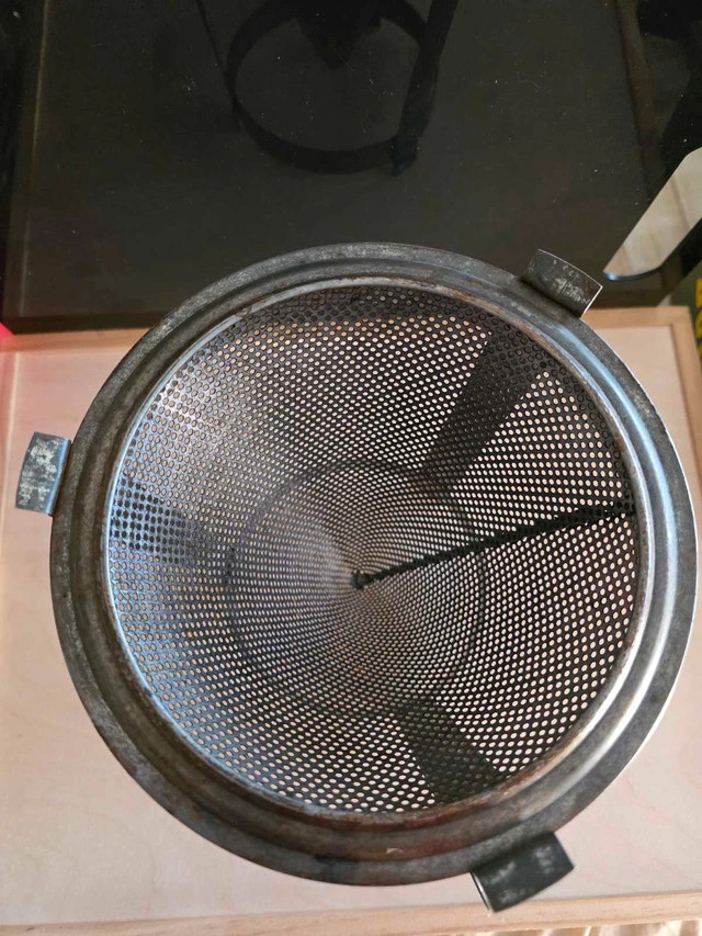 64This antique strainer comes with a vintage pestle and is ready for a new home. This strainer has a metal mesh to drain liquid and the stand and handle are also made of metal. The pestle is made of wood. This item is used, so expect some wear and tear. Additional details include: * Material: Metal, Wood * Style: Vintage Looking to add a dash of vintage charm to your kitchen? This strainer is just the ticket! It's got that timeless appeal that's sure to spark joy. If the ad's up, it's still available! I've priced it at $60, reflecting its condition and unique appeal.
