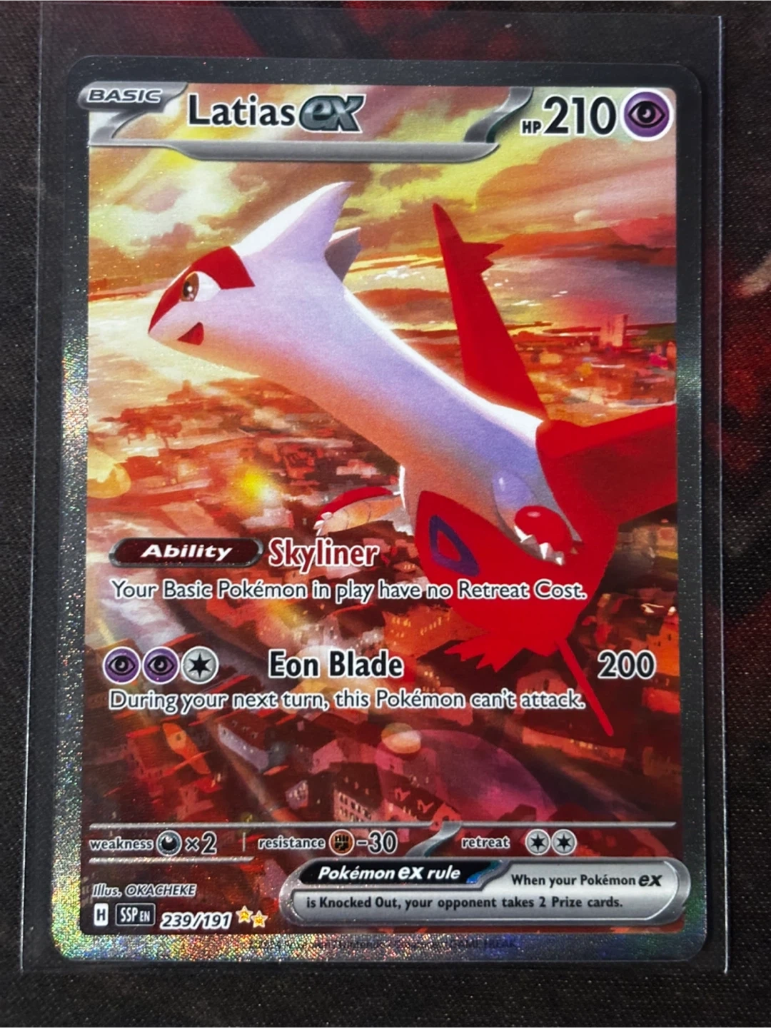 Buy & SellLatias ex Special Illustration Rare - 239/191Latias ex Special Illustration Rare - 239/191$250Selling a Latias ex Pokemon card from the Scarlet & Violet series, card number 239/191 Pack Fresh - Near Mint/Mint Cash and Pick up onlyConditionLike newWHERE TO MEETSan Remo BakeryView MapSELLERverifiedAlyazMimico1074 reviews0 chats·1 favorites·20 views