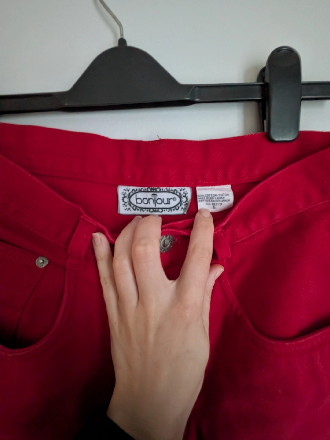 Buy & SellBonjour Red Cotton JeansBonjour Red Cotton Jeans$10Selling a pair of vintage Bonjour jeans in red. 100% cotton. women's size 6.WHERE TO MEETCheck LocationView MapSELLERashwyrzykLiberty Village433 reviews0 chats·0 favorites·4 views