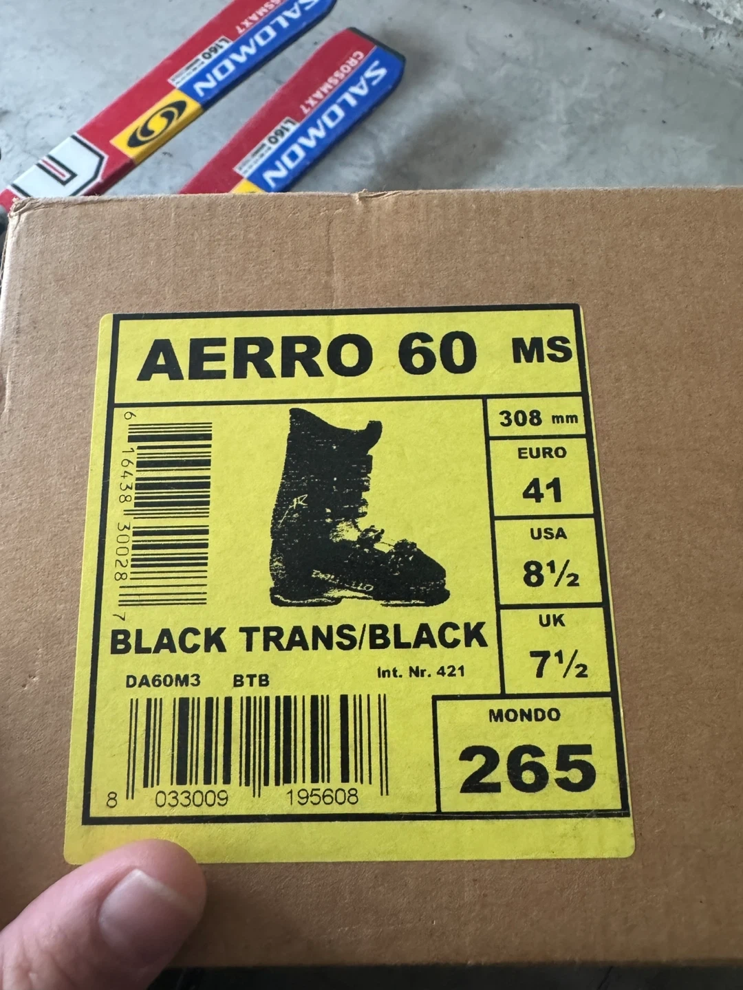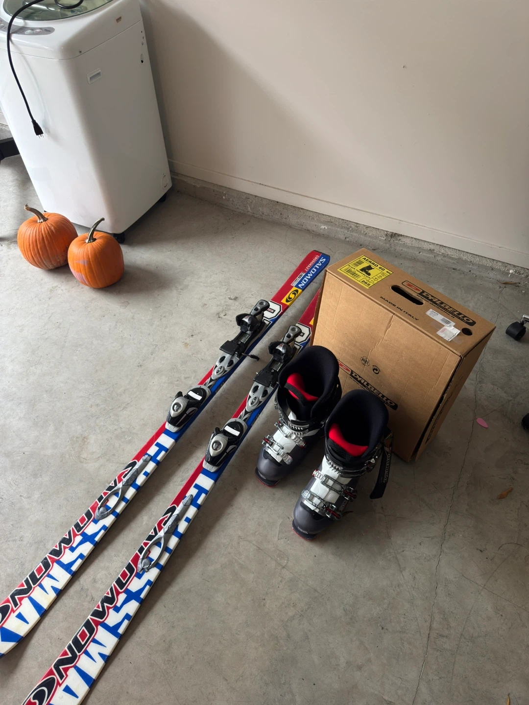 Selling a pair of Salomon Crossmax 7 skis, length 160cm, along with Dalbello Aerro 60 MS ski boots. The boots are size US 8.5, Euro 41, and Mondo 265. The original box for the ski boots is included! Originally bought for $249.95 only used for two times.