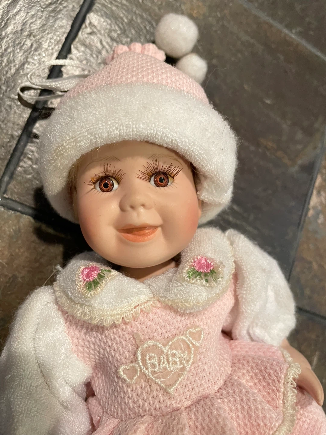 Collectible Porcelain Baby Doll, Pink Outfit