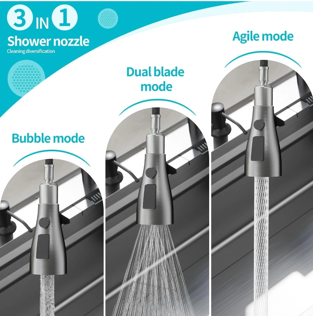 It also features four water spray modes and a 3-in-1 shower nozzle with shower, bubble, and agile modes