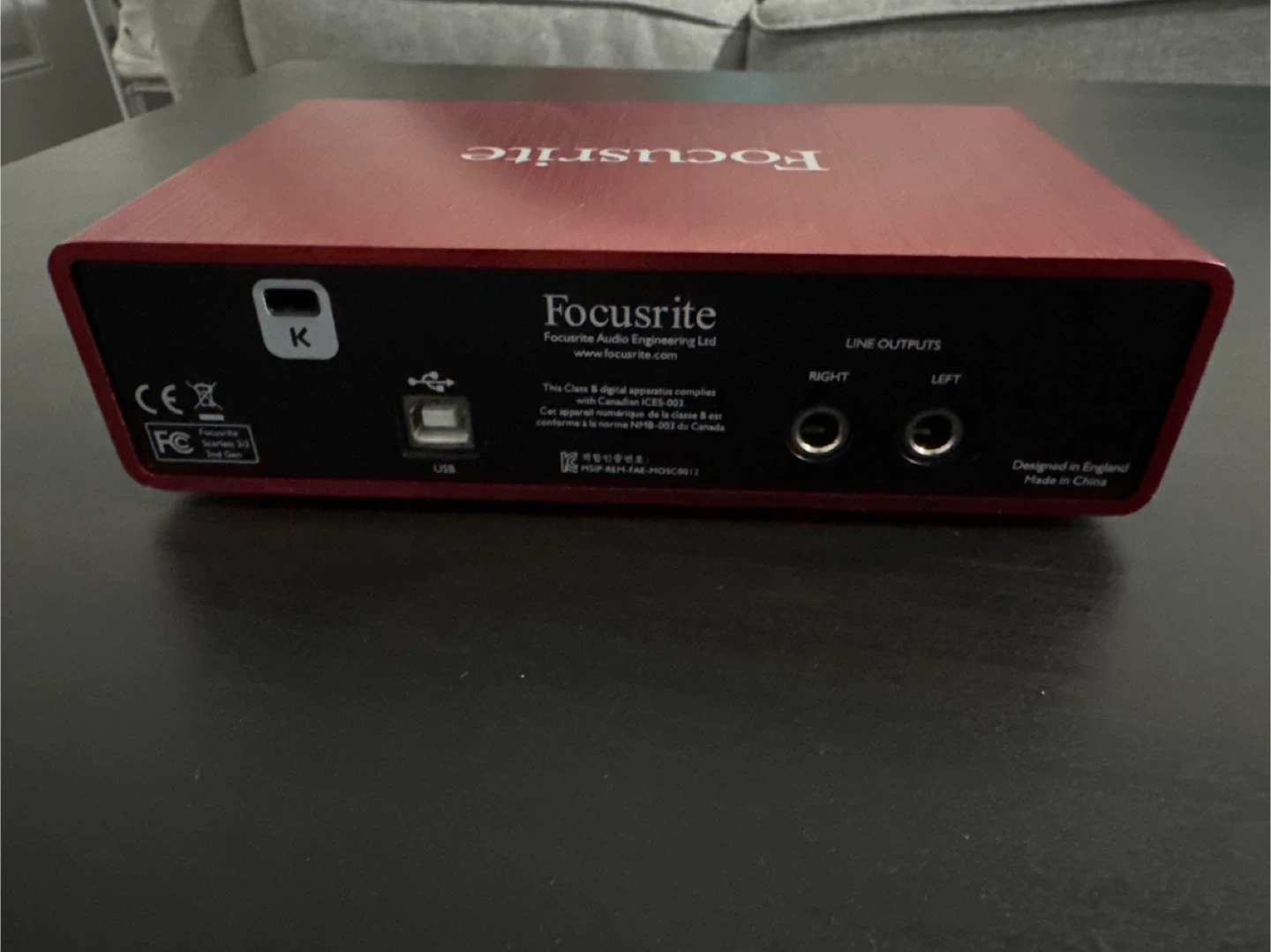 Selling a Focusrite Scarlett 2i2 audio interface. It's in great condition and ready to use for your recording needs!