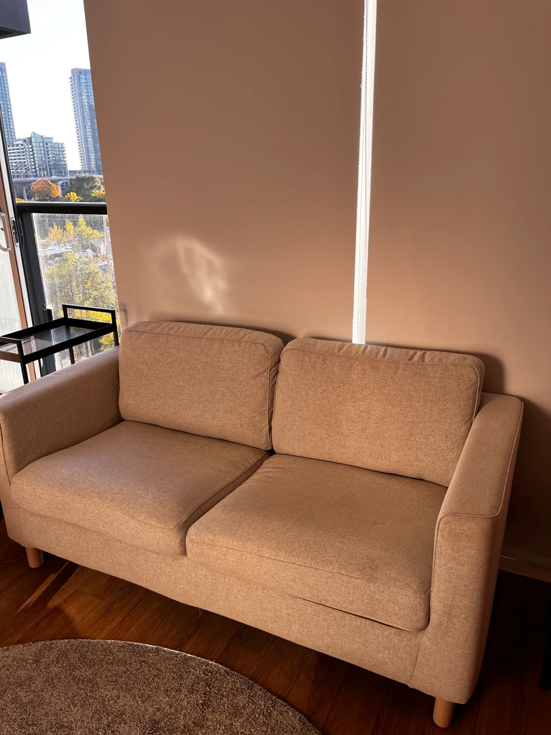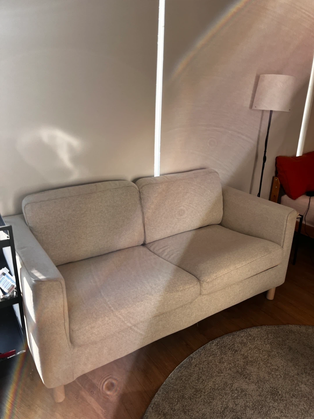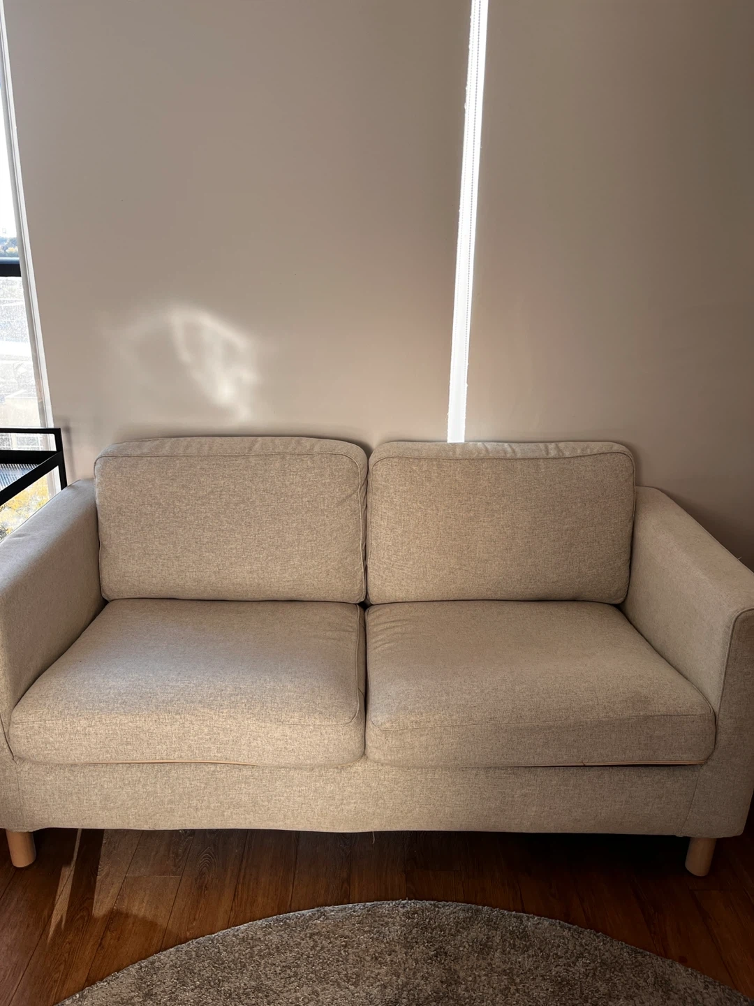 65Selling a comfy loveseat sofa! It's in great shape and would be perfect for a smaller space. The neutral beige colour makes it easy to match with any decor. It's a cozy spot to relax and unwind after a long day :) For pick up only