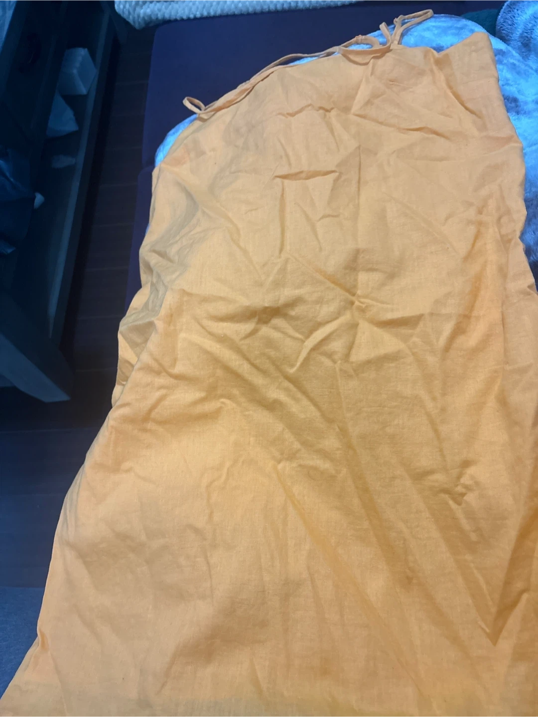 A simple orange dress. Perfect for layering or wearing on its own during warmer weather. It's in good condition and ready for a new home!