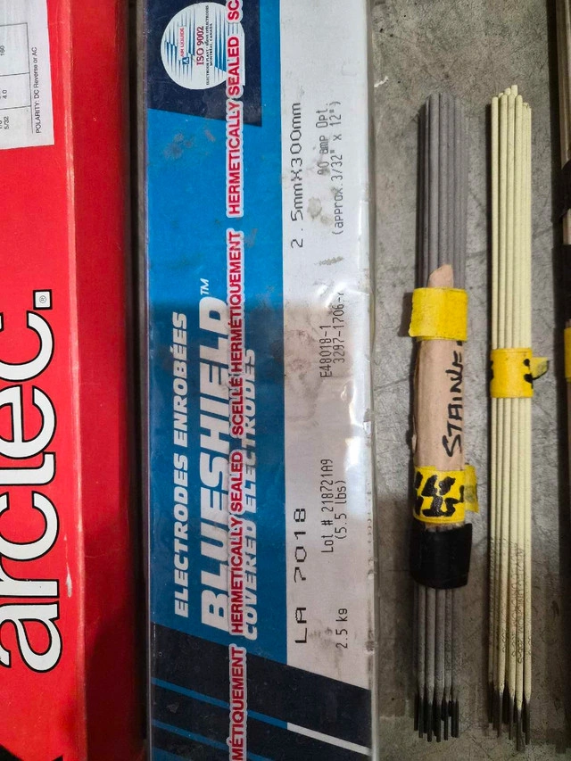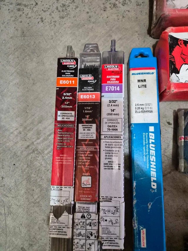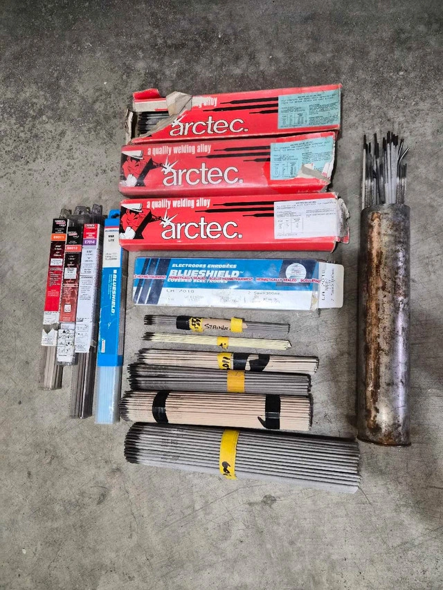 Offering a variety of welding rods suitable for different welding needs! This lot includes Arctec 223 XC/DC for high strength applications, Arctec 222 AC/DC for general fabrication, Lincoln Electric E6011 and E6013 for versatile welding, Blueshield MNR Lite electrodes, and more. These rods are ready to tackle your welding projects. Specifications: * Arctec 223 XC/DC: High strength, crack resistant electrodes. * Arctec 222 AC/DC: All-position low alloy electrodes. * Lincoln Electric E6011 & E6013: General purpose electrodes. * Blueshield MNR Lite: Electrodes for various applications. * Additional unmarked welding rods included. If the ad is up, it's available! Happy welding!