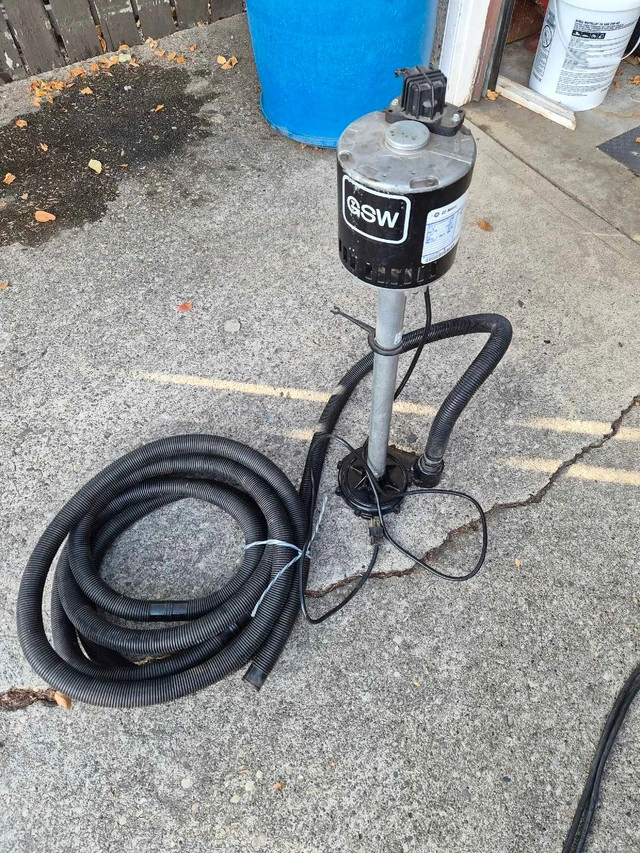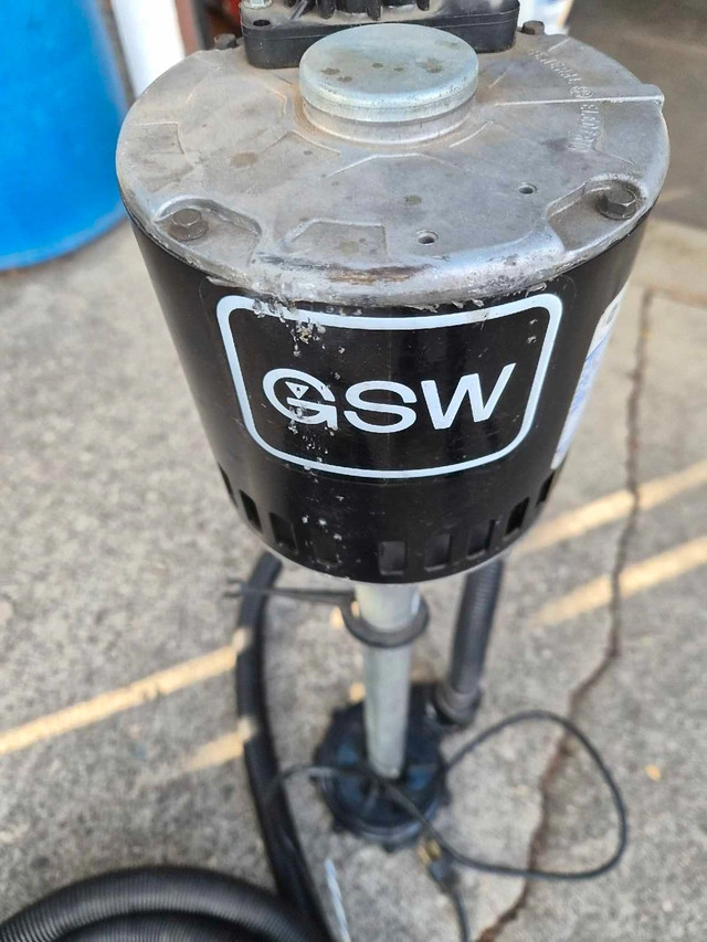 This GSW sump pump, equipped with a robust 0.3 HP GE motor, is ready to keep your basement dry. It's in good, used condition, perfect for reliable water removal. Here are some specifications: * **Brand:** GSW * **Motor:** GE Motors * **Horsepower:** 0.3 HP * **Voltage:** 115 V * **RPM:** 1725 It's available if the ad is up!