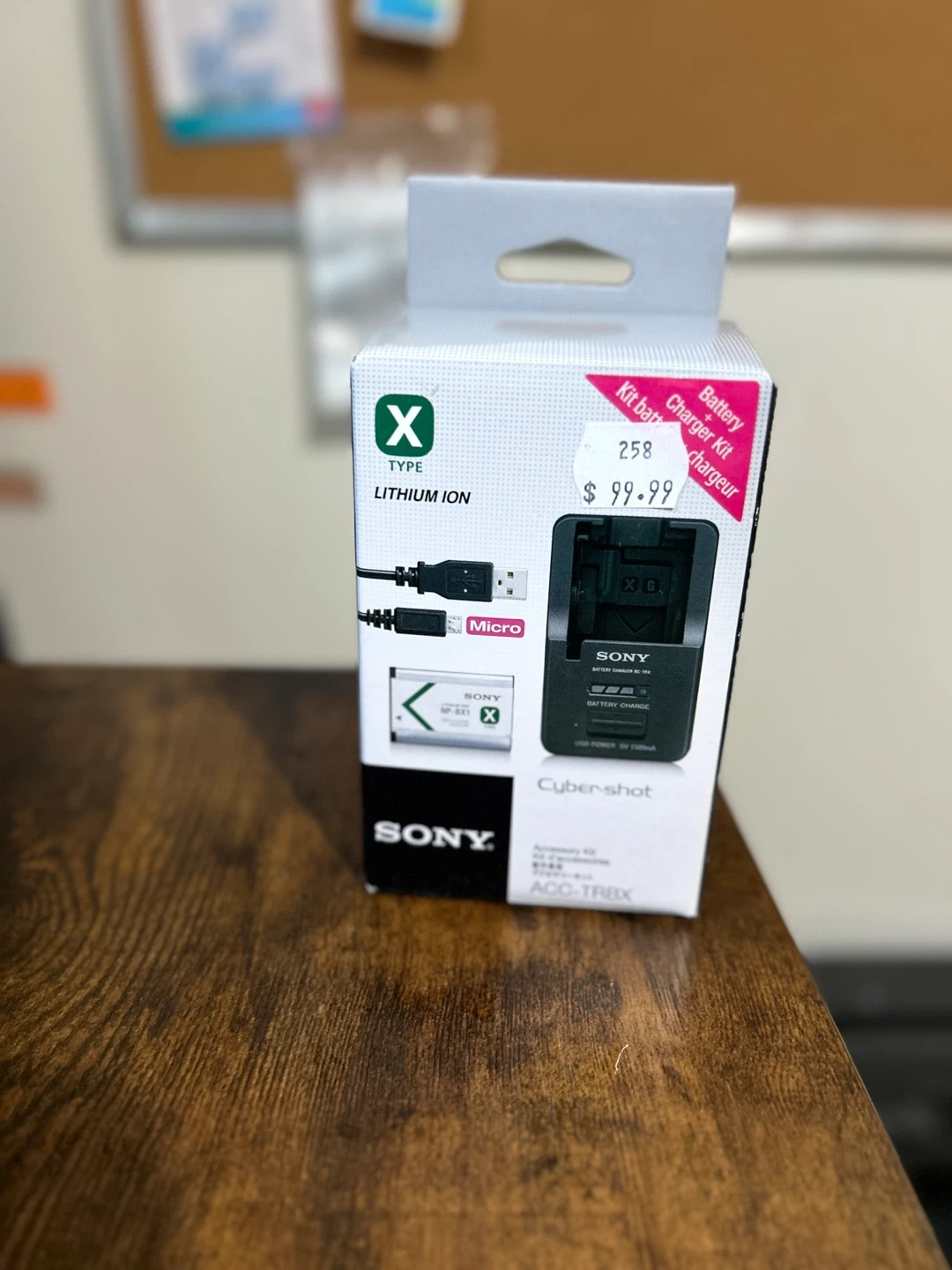 Selling a brand new Sony ACC-TRBX accessory kit! This kit includes a battery charger and rechargeable battery pack (NP-BX1), so you'll always have power for your camera. It also comes with a micro USB cable and a set of printed documents. Originally bought for $99.99!