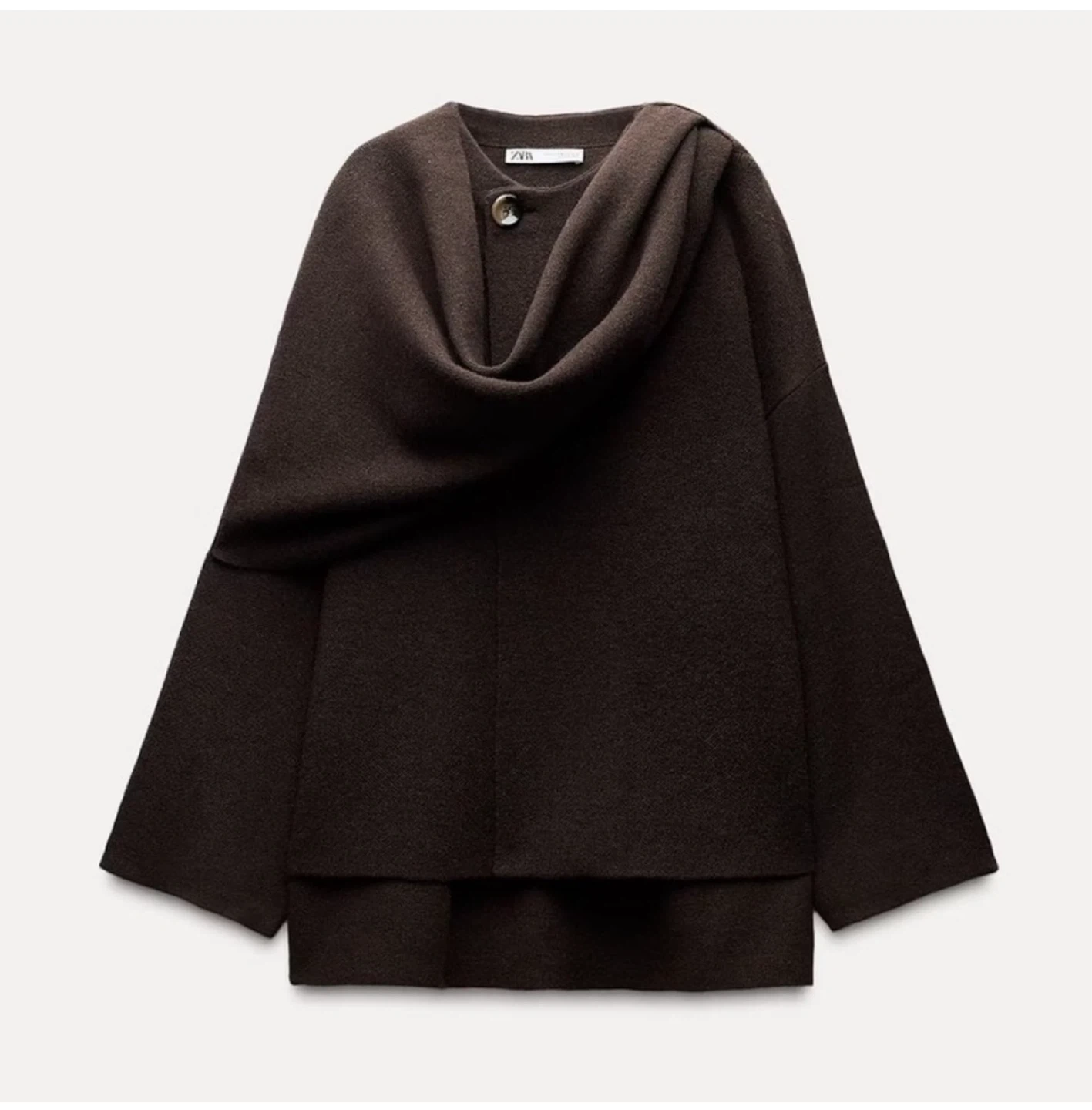 Zara Influencer loved oversized knit with attached scarf in chocolate brown.