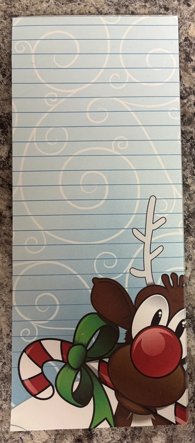 Selling a set of Christmas themed note pads. They feature festive designs like reindeer, Christmas trees, penguins and snowmen. Perfect for making shopping lists or jotting down notes during the holiday season!