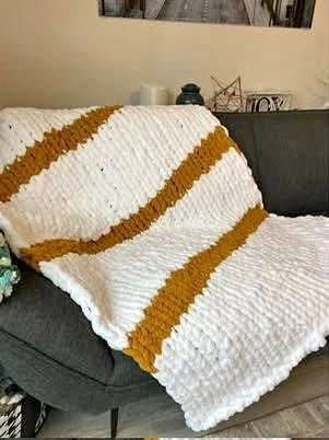 10Pure white & gold chunky yarn blanket. 50x60 inches. Ready to be snuggled.