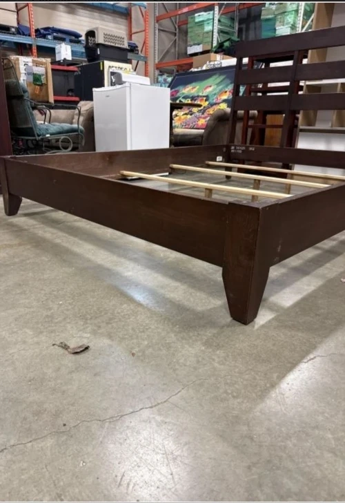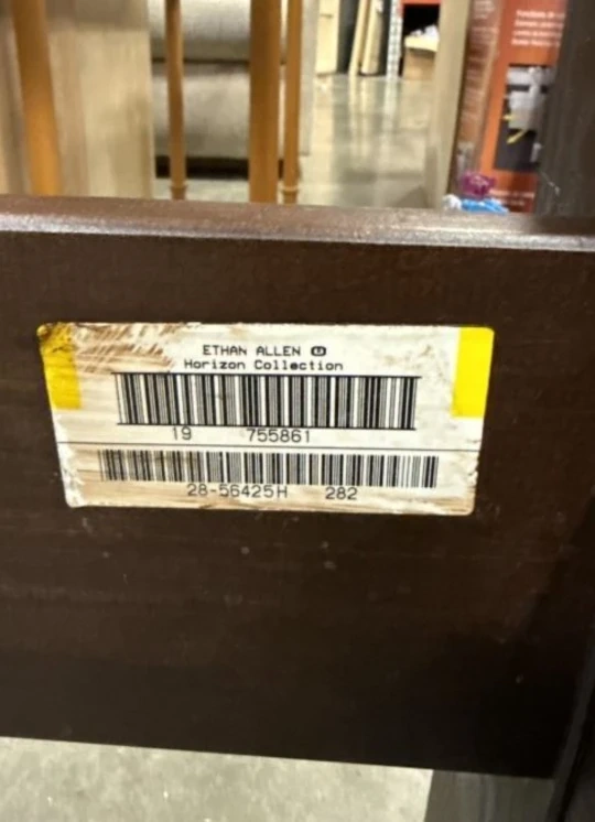 Ethan Allen bed frame from the Horizon Collection. It's a beautiful, sturdy piece ready for a new home! The dark finish adds a touch of elegance to any bedroom. Measurements to follow. Delivery can be arranged. Viewing and pickup by appointment