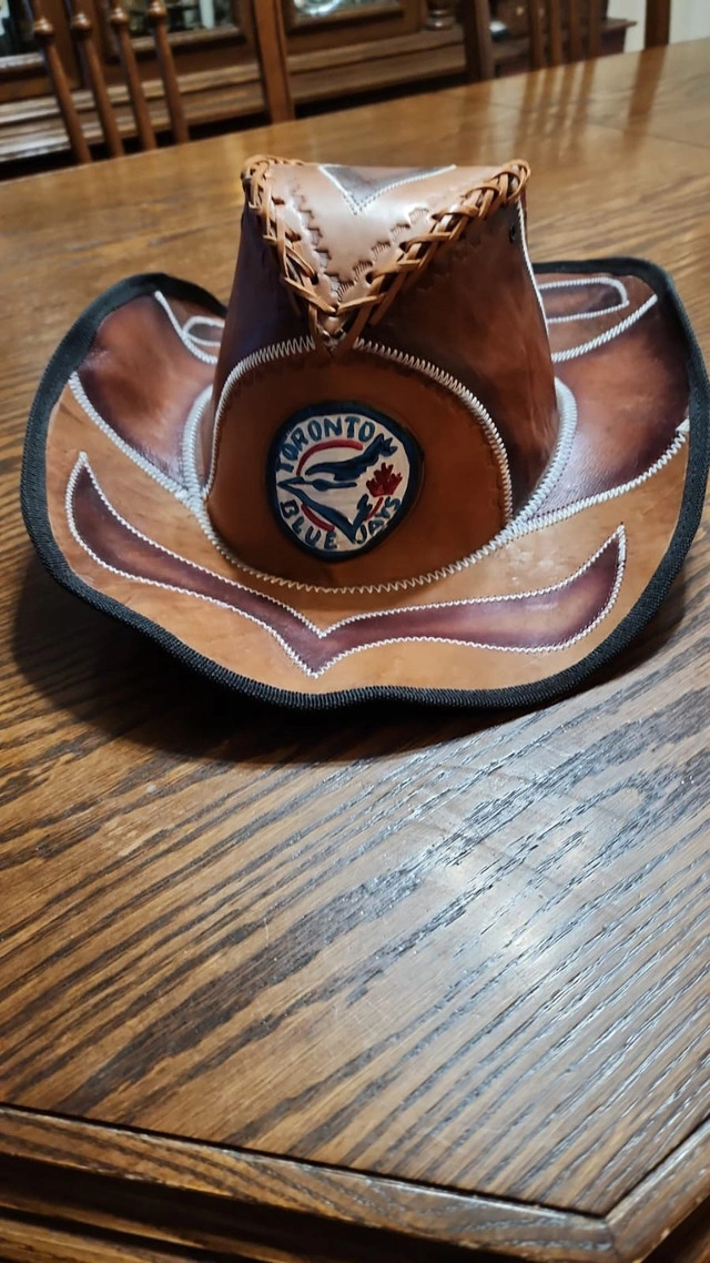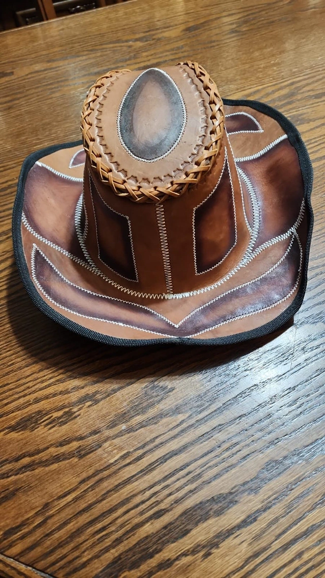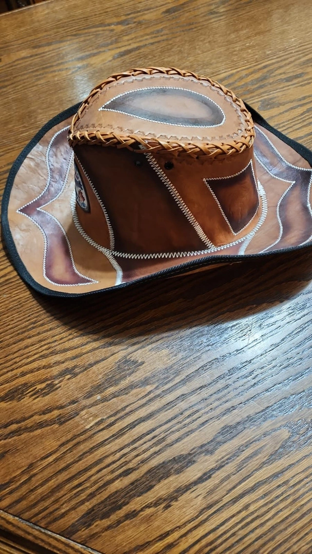 113Gorgeous Vintage Genuine Leather Cowboy Hat. Brand new, never worn. Bought from Cuba years ago. Condition: Used - Good. Size: Medium. Cash accepted.