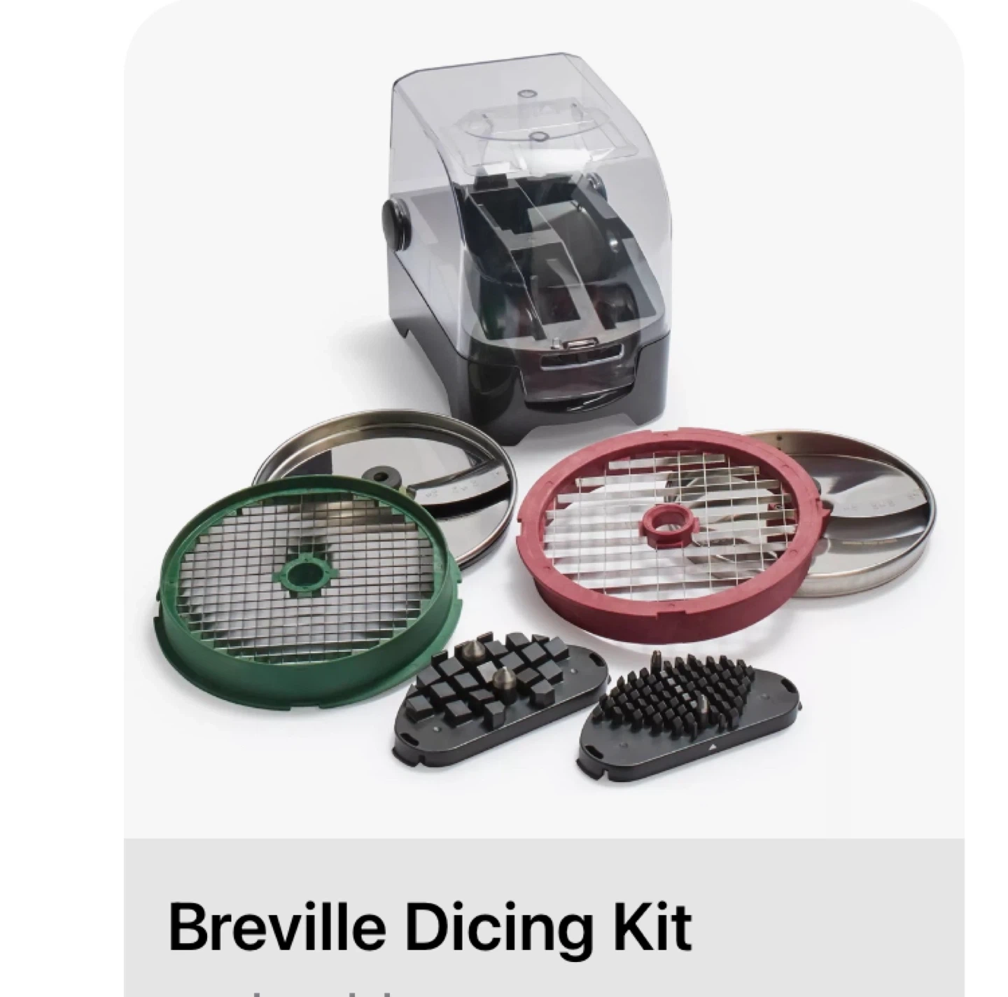 71Selling a Breville Dicing Kit! It is brand new and in great condition and includes all the pieces you see in the photo. Perfect for quickly dicing veggies for soups, stews, or salads! Compatible with with Sous Chef 16 Peel & Dice. Selling because it was not compatible with the model I have.