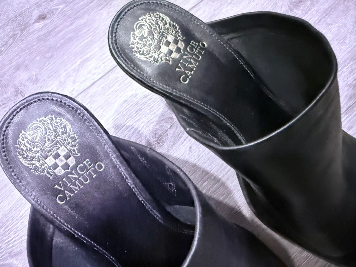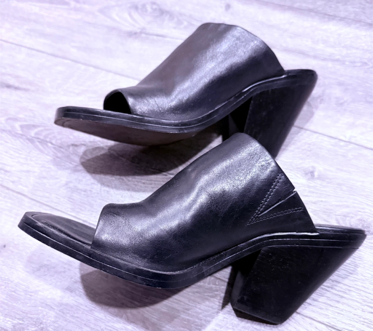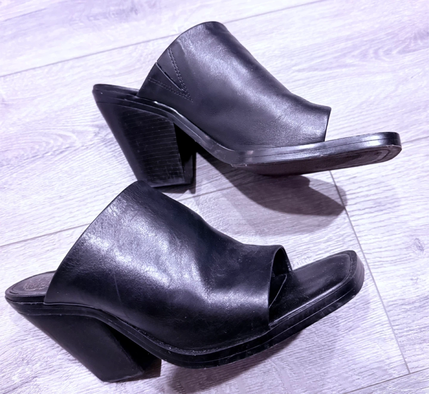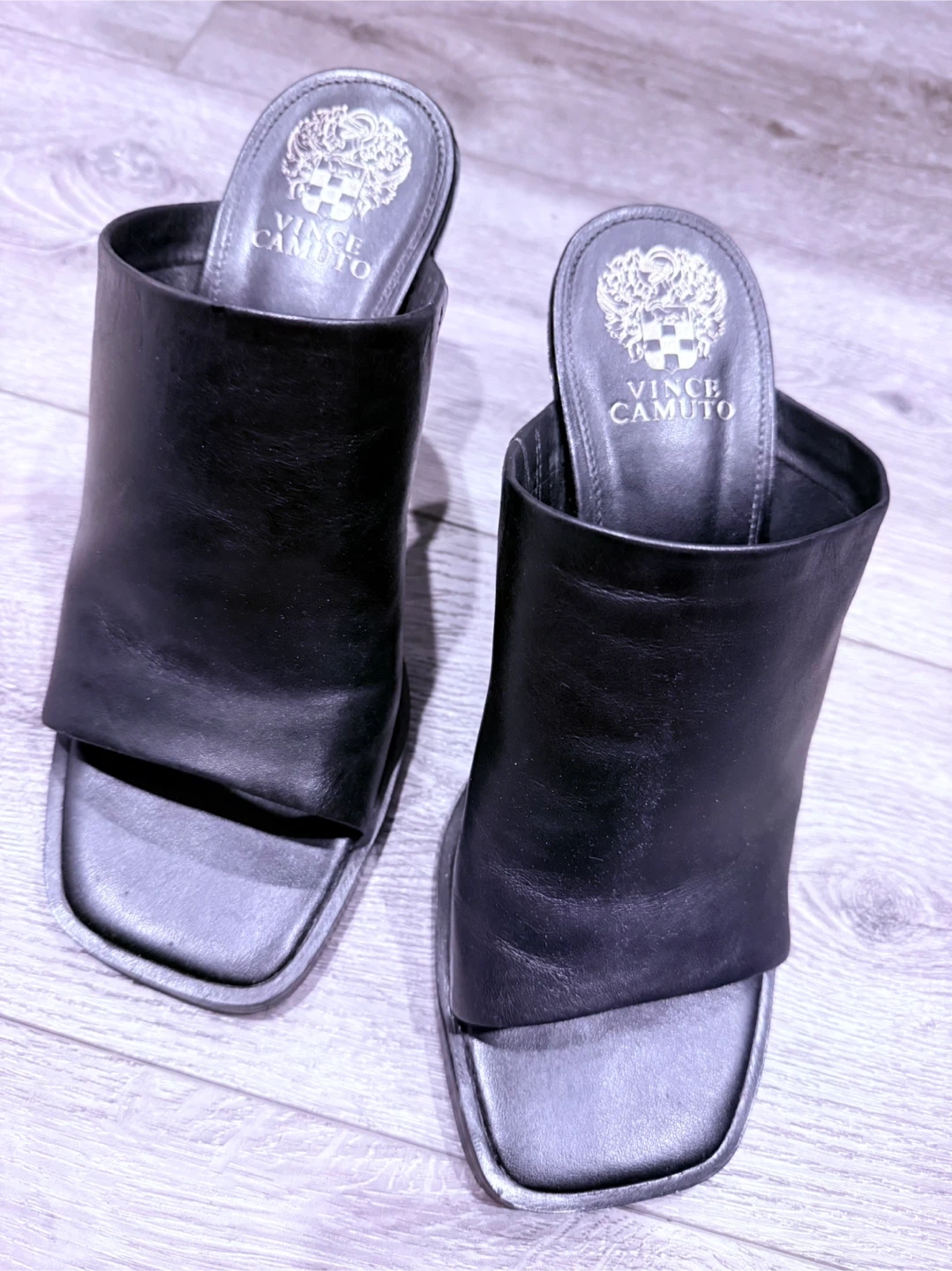 442Selling a pair of Vince Camuto heeled mules in black leather. These stylish mules are perfect for adding a touch of elegance to any outfit. They are in great condition and ready for a new home!