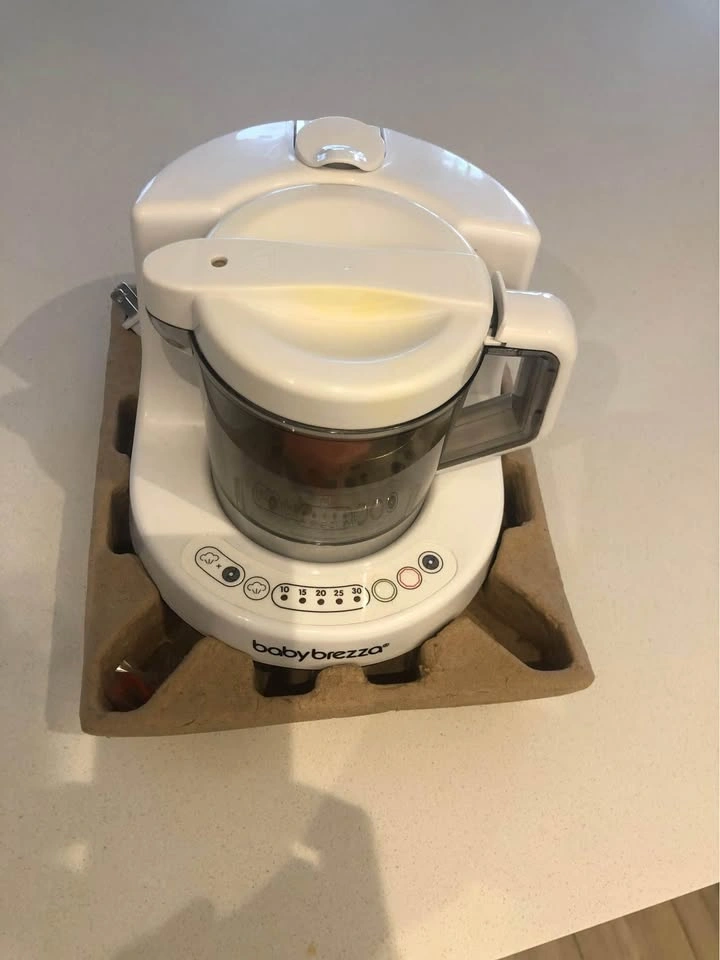 Almost new in box with new still in pack spare rubber bands, works perfectly. Only some yellow spot on the lid from steamed carrots.