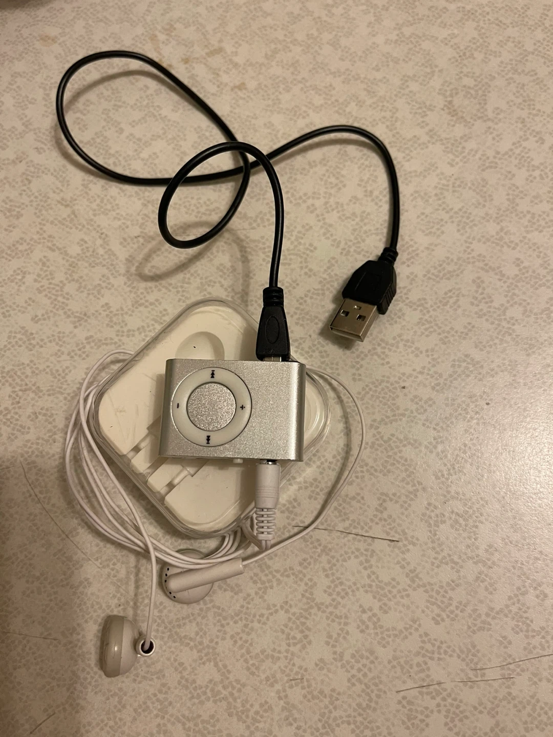 Selling an iPod Shuffle in silver! It comes with the original headphones and a case for the headphones. Great for listening to music on the go!