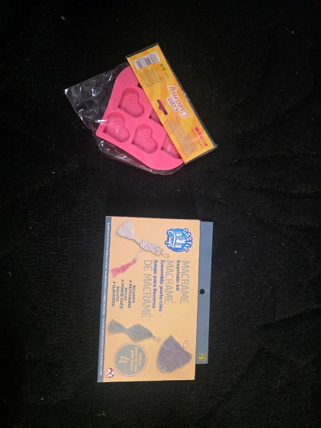 The Castle Craft Macrame Keychain Kit is a creative set that comes with everything needed to make four stylish macramé keychains. Alongside it, the heart-shaped silicone ice tray features six flexible pink molds perfect for making ice, chocolates, candies, or mini soap...