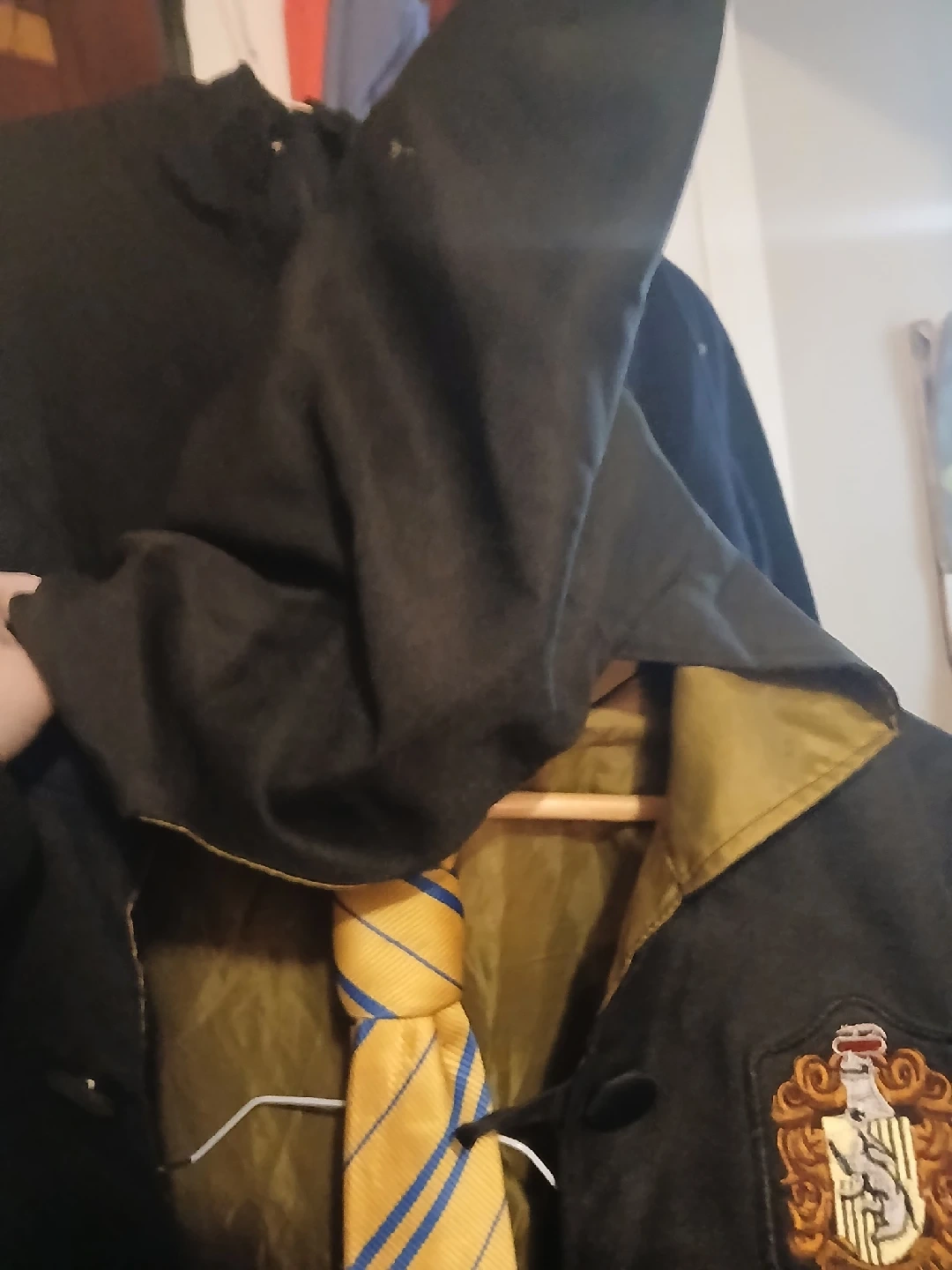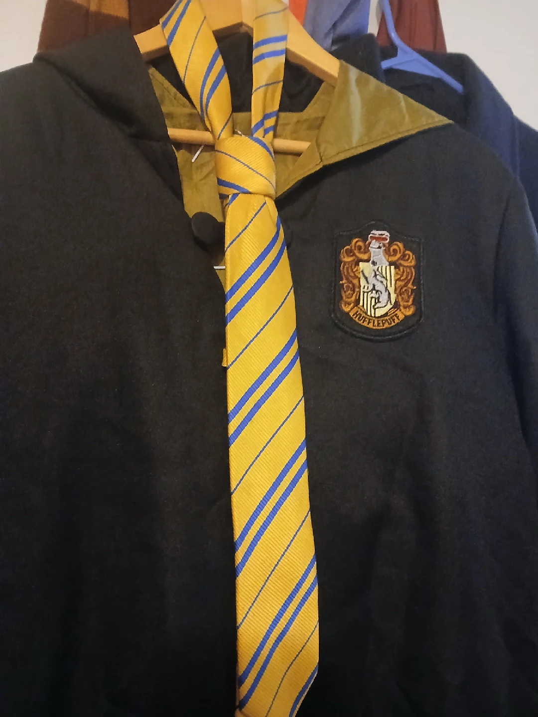 Includes the Hufflepuff Cloak, complete with insignia, hood and a pocket for your wand.