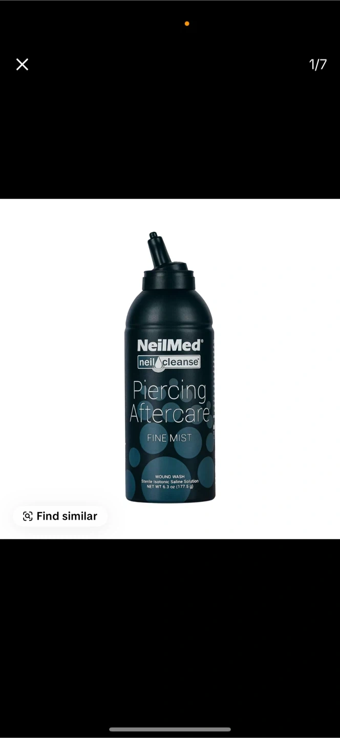 I'm selling a NeilMed Piercing Aftercare Fine Mist. It's a wound wash, sterile isotonic saline solution. Net weight is 6.3 oz (177.5 g).