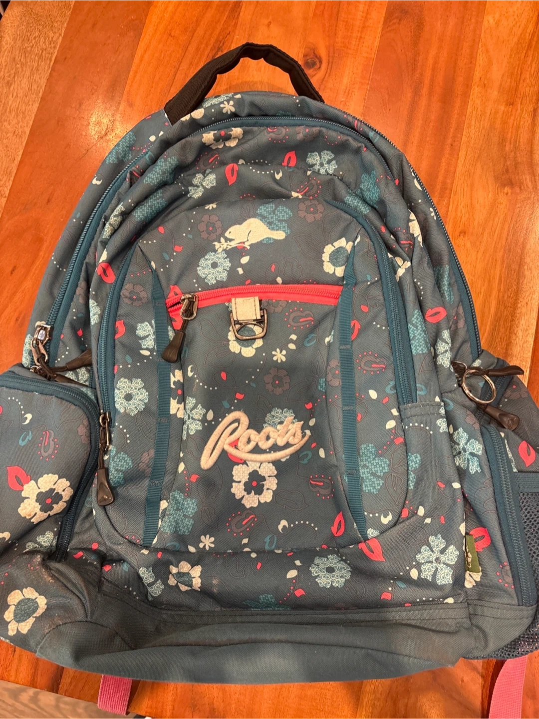 26Used Roots backpack with a cute floral pattern! It's in great shape. Perfect for school, travel, or everyday use
