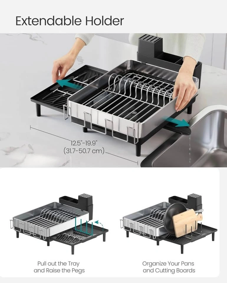 125Keep your kitchen organized with this SONGMICS Large Dish Drying Rack. Features: β’ Expandable design to fit your countertop space β’ Stainless steel construction with silver & black finish β’ Rotatable spout for easy drainage β’ Convenient holders for utensils, cups, glasses, cutting boards, and pans π¦ Condition: Brand new, never used π° Price: $45 π Pick up in Riverbend π΅ Cash preferred