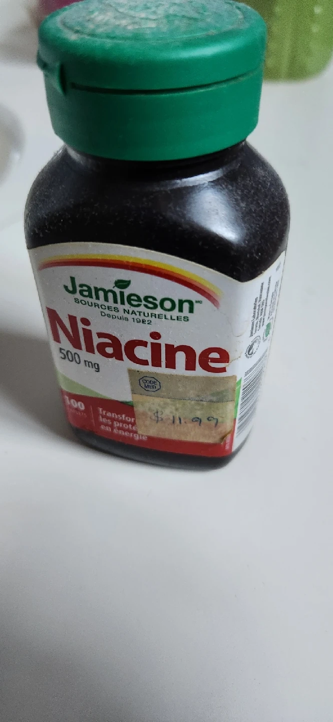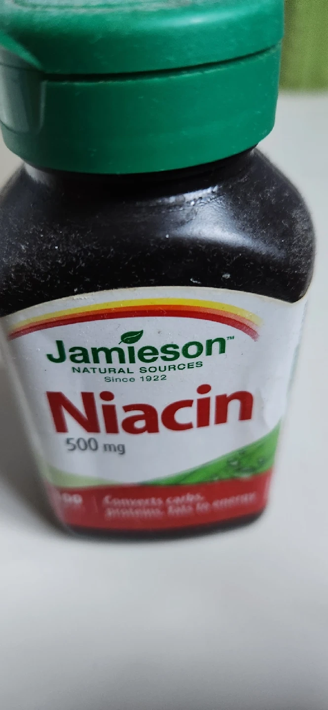 573Selling a bottle of Jamieson Niacin, 500mg. This supplement helps your body convert carbs into energy. Expiry Date: 2025 November 09