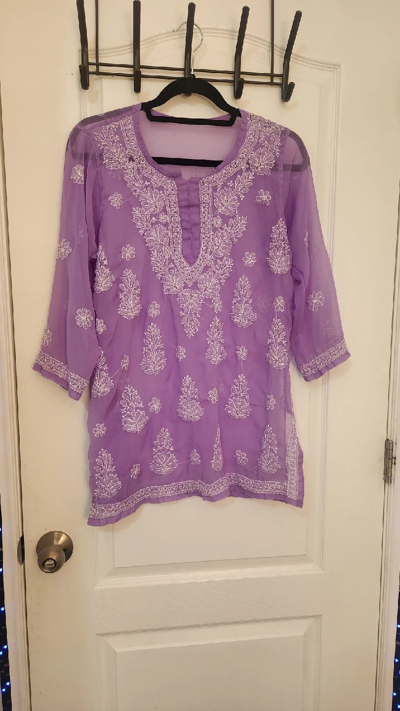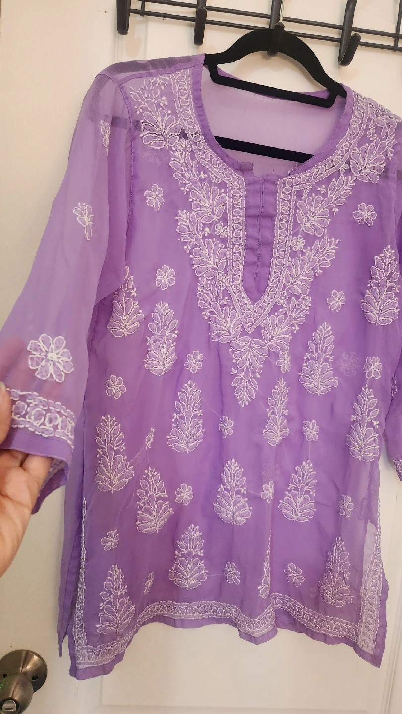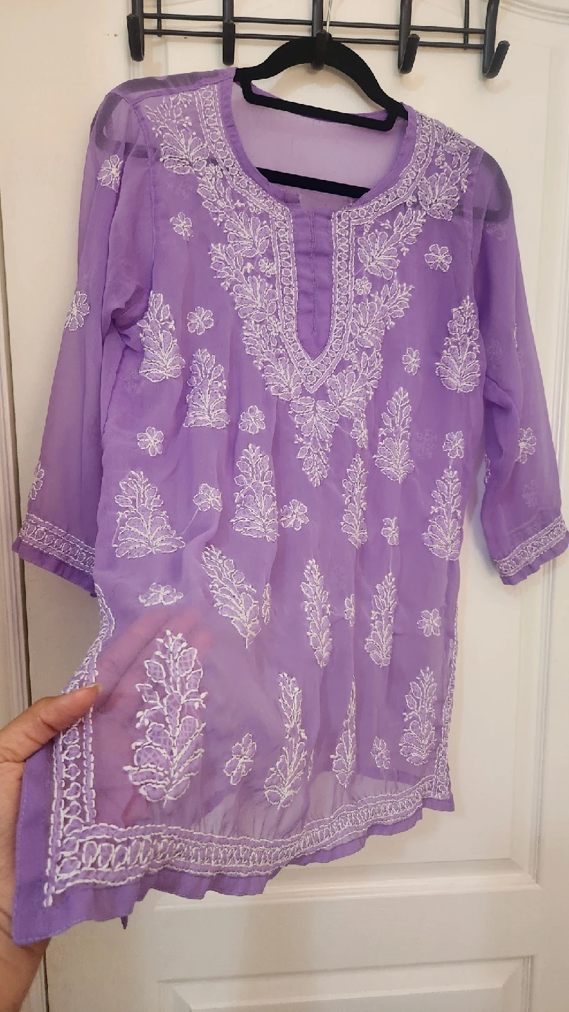 Selling a lovely lilac-coloured kurti top with beautiful white embroidery. It's in great condition and ready for a new home! Perfect for adding a touch of elegance to your wardrobe.