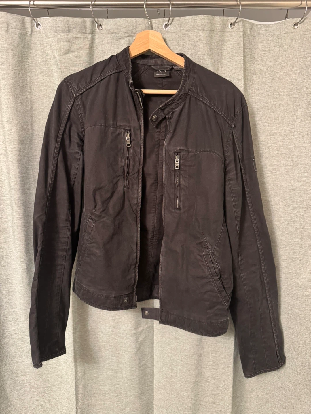 Selling a Armani Exchange jacket in a dark colour! It's in great shape and ready for a new home. Perfect for adding a bit of edge to your wardrobe. Wears like XS.