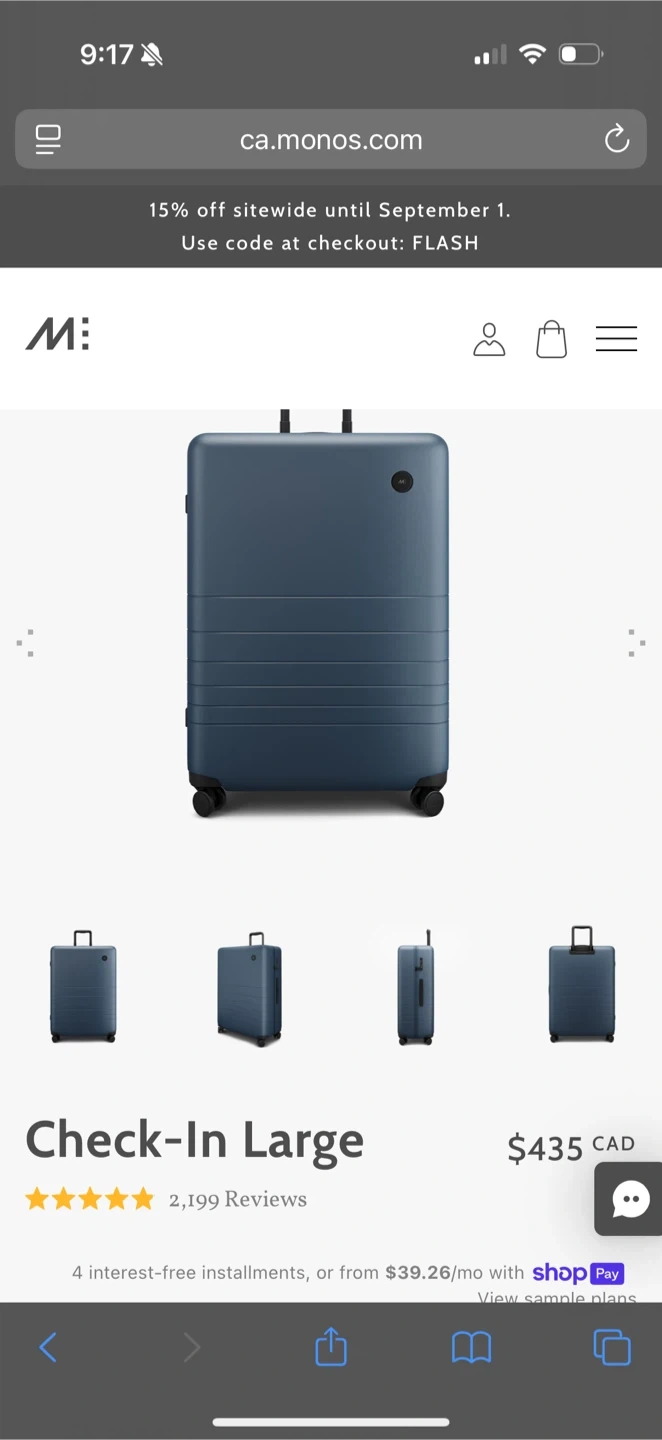 Monos check in large suitcase