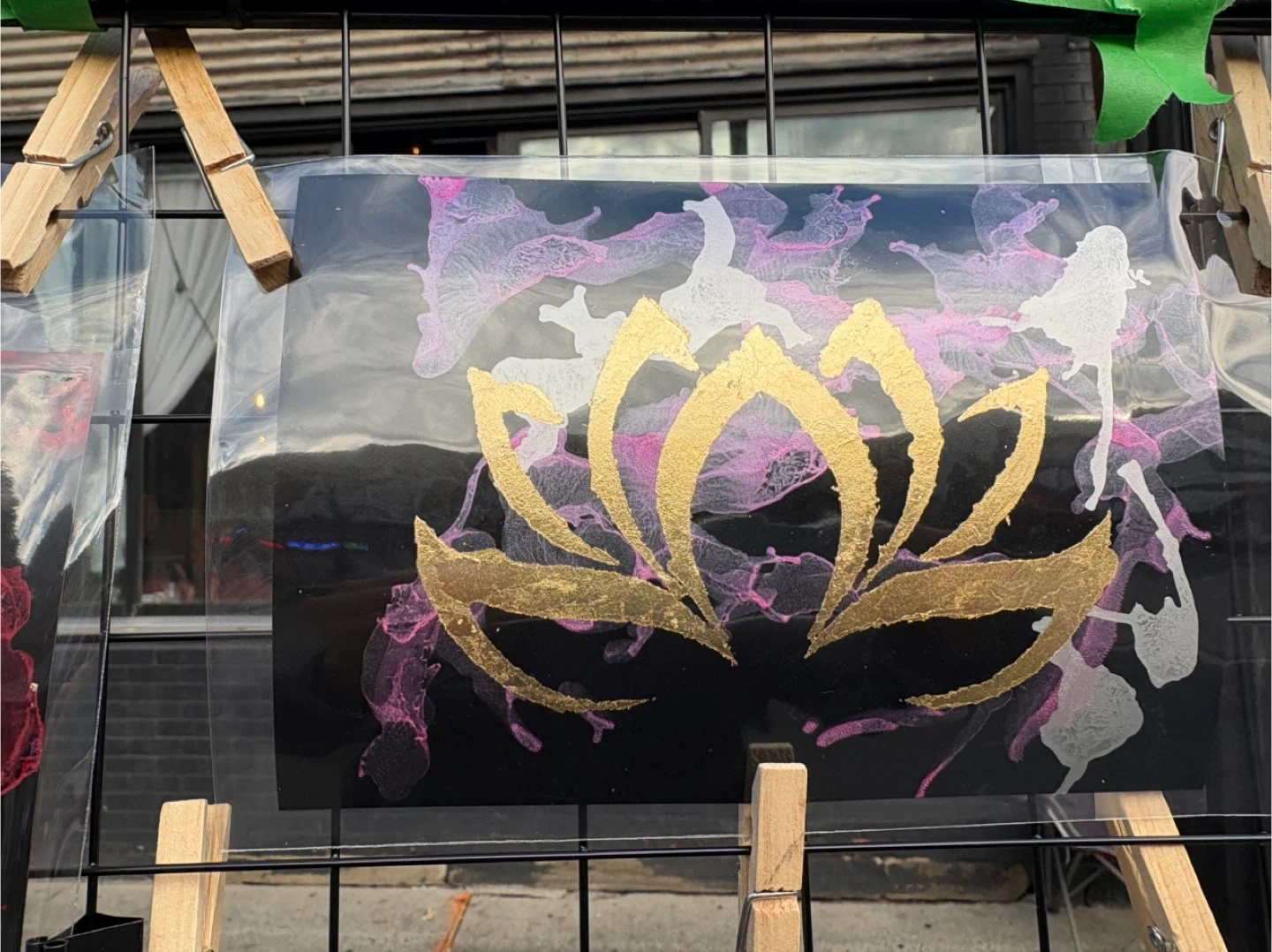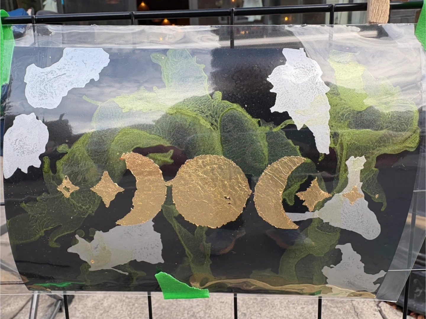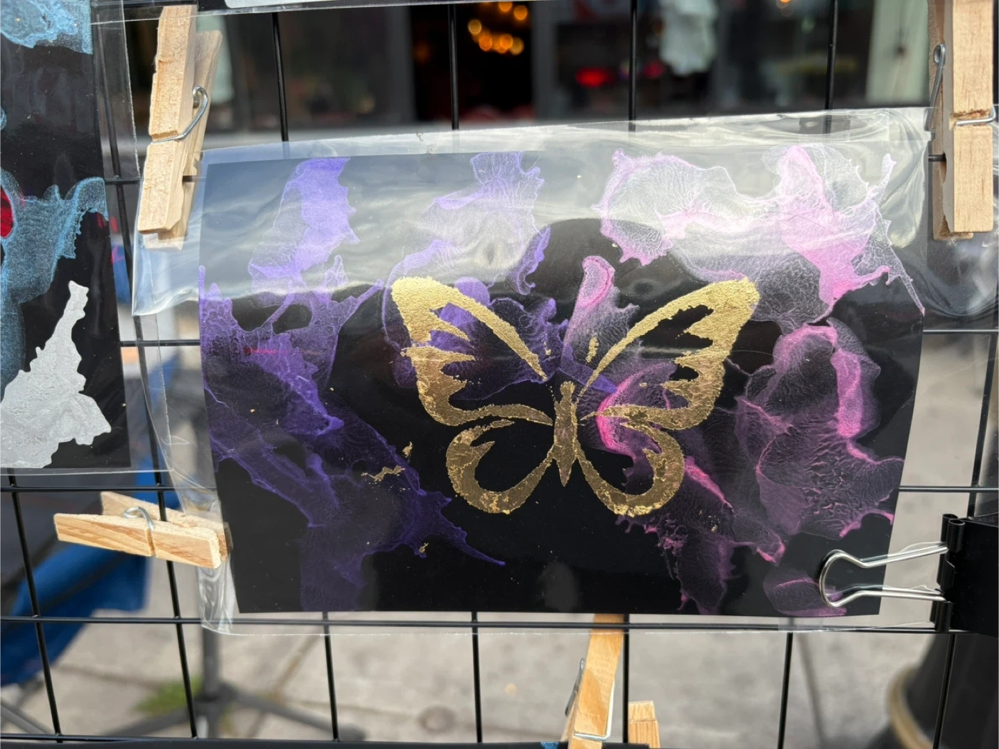Check out some unique handmade art! Alcohol ink with gold leaf on black background. Each one features a different design, including a lotus flower, moon and stars, and a butterfly. They're perfect for adding a personal touch to any occasion or just to brighten someone's day