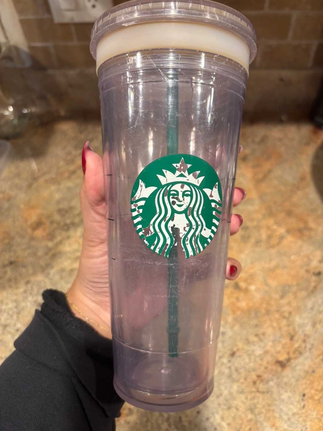 Selling a Starbucks reusable tumbler with a straw. It has some wear and tear on the logo, as you can see in the photos, but it's still perfectly functional for your favourite iced drinks!