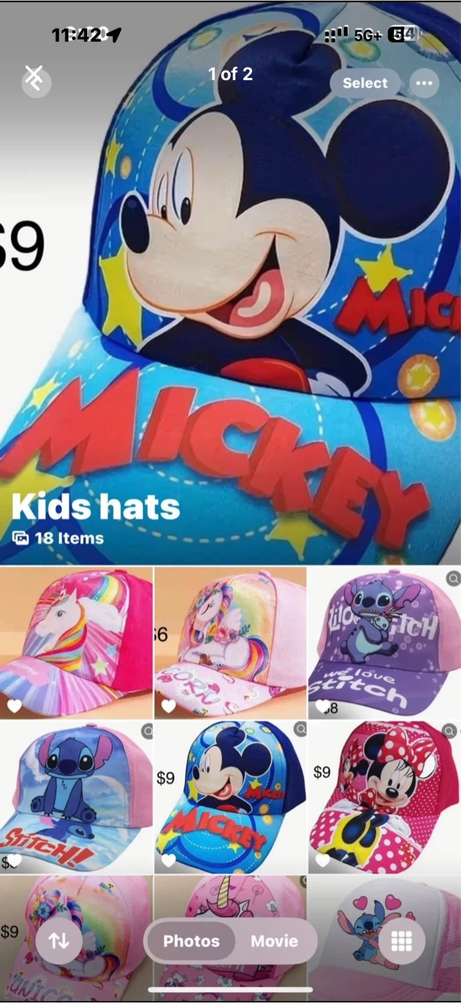 70Kids hats with a Mickey Mouse design! Perfect for keeping the sun out of your little one's eyes while adding a touch of fun to their outfit $7 per hat or two hats for $10