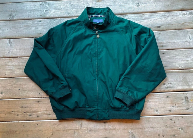 Light-to-Medium Weight, and perfect for fall or early winter. In near perfect condition - clean, no stains, or odors. Zipper is fully functional. Size: XL Color: Dark Green Material: 60% cotton, 40% polyester