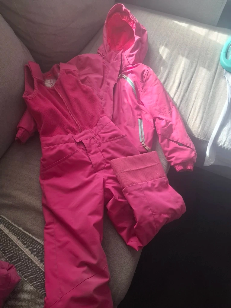 18A cute pink snowsuit set for your little one! This set includes a jacket and overalls. It's perfect for keeping your child warm and dry during the winter months. The set is in great condition and ready for a new home!