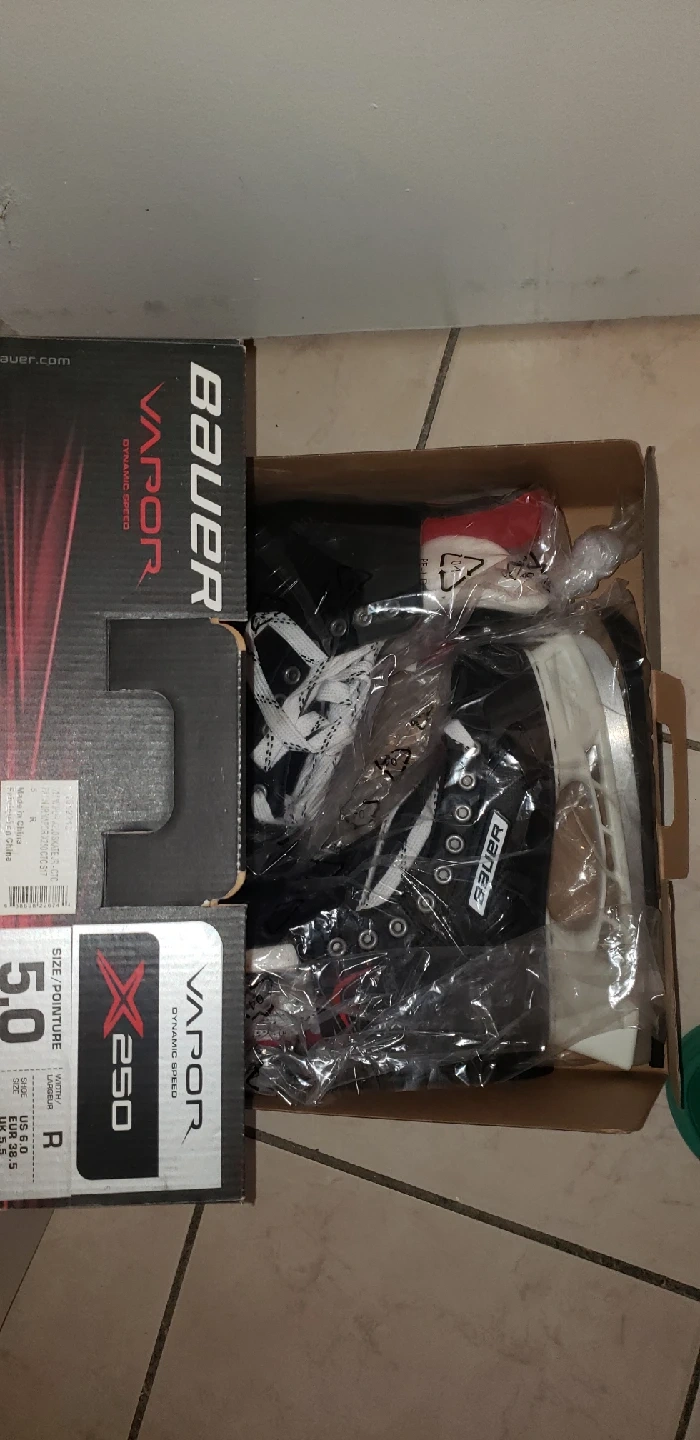 Selling a pair of Bauer Vapor X250 ice hockey skates in size 5. They are in great condition and come with the original box. Perfect for hitting the ice!