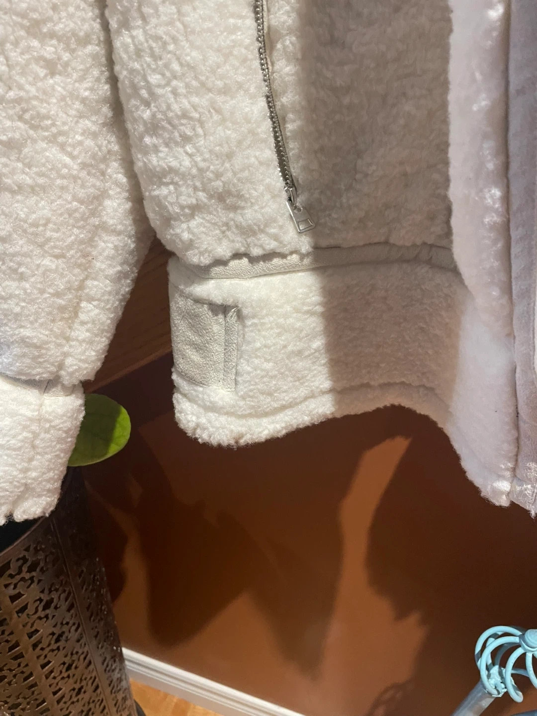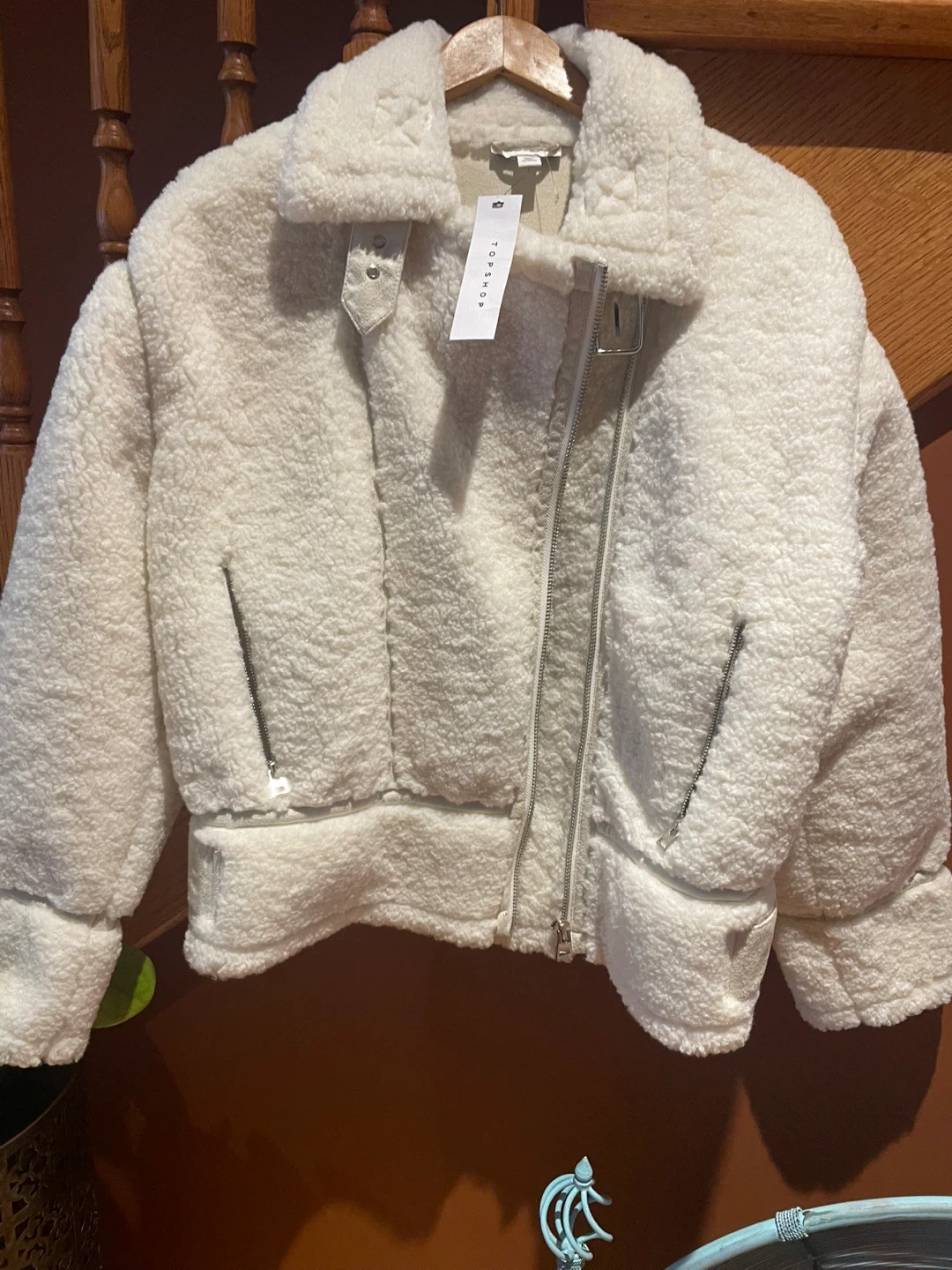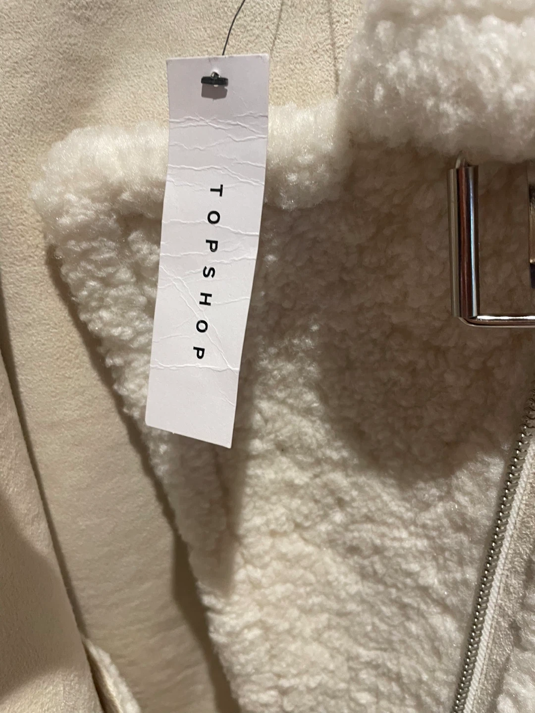 Selling a cozy Topshop faux shearling jacket! It's a cream colour and a US size 8. Perfect for adding a warm and stylish layer to your outfits this season