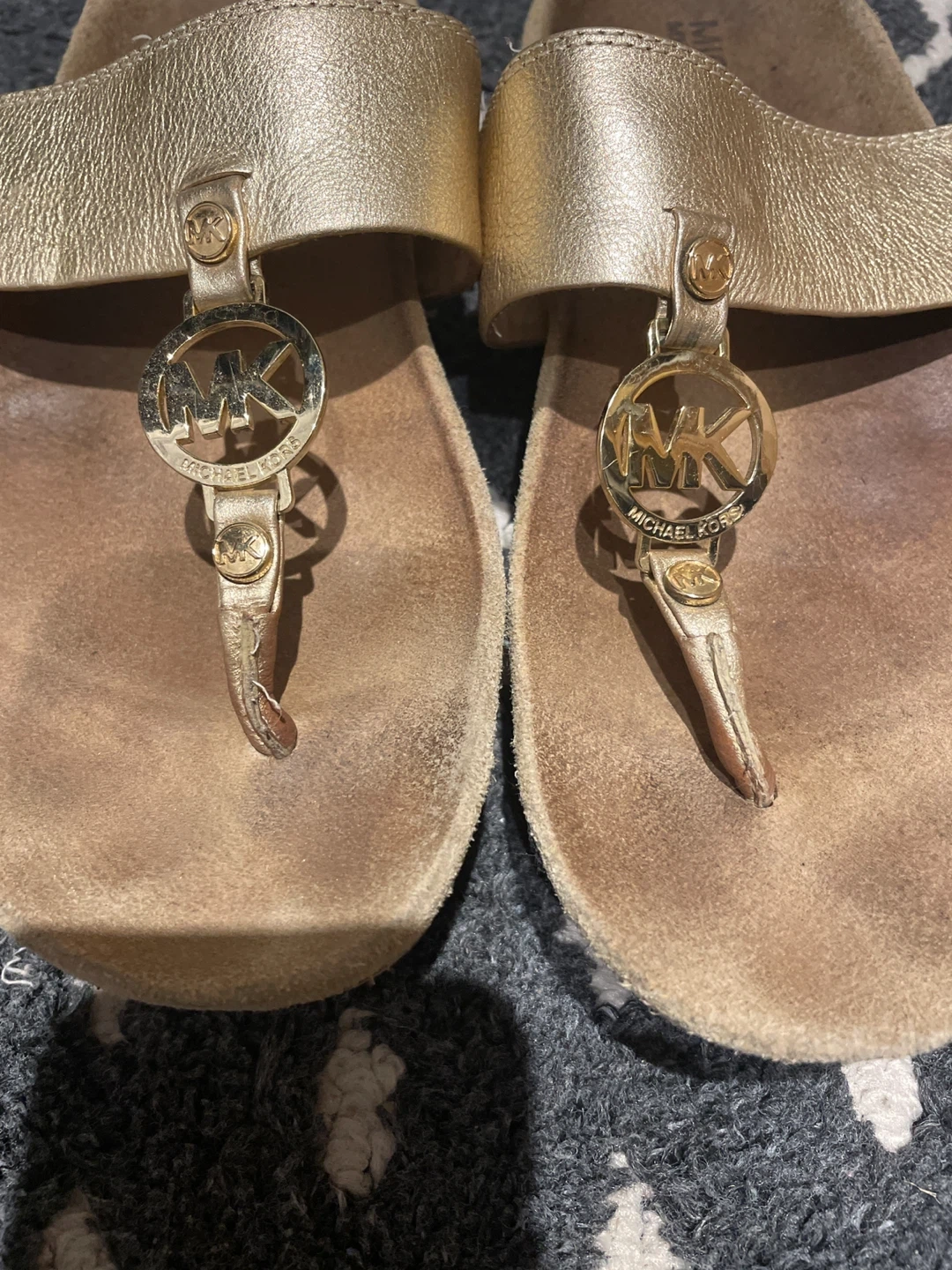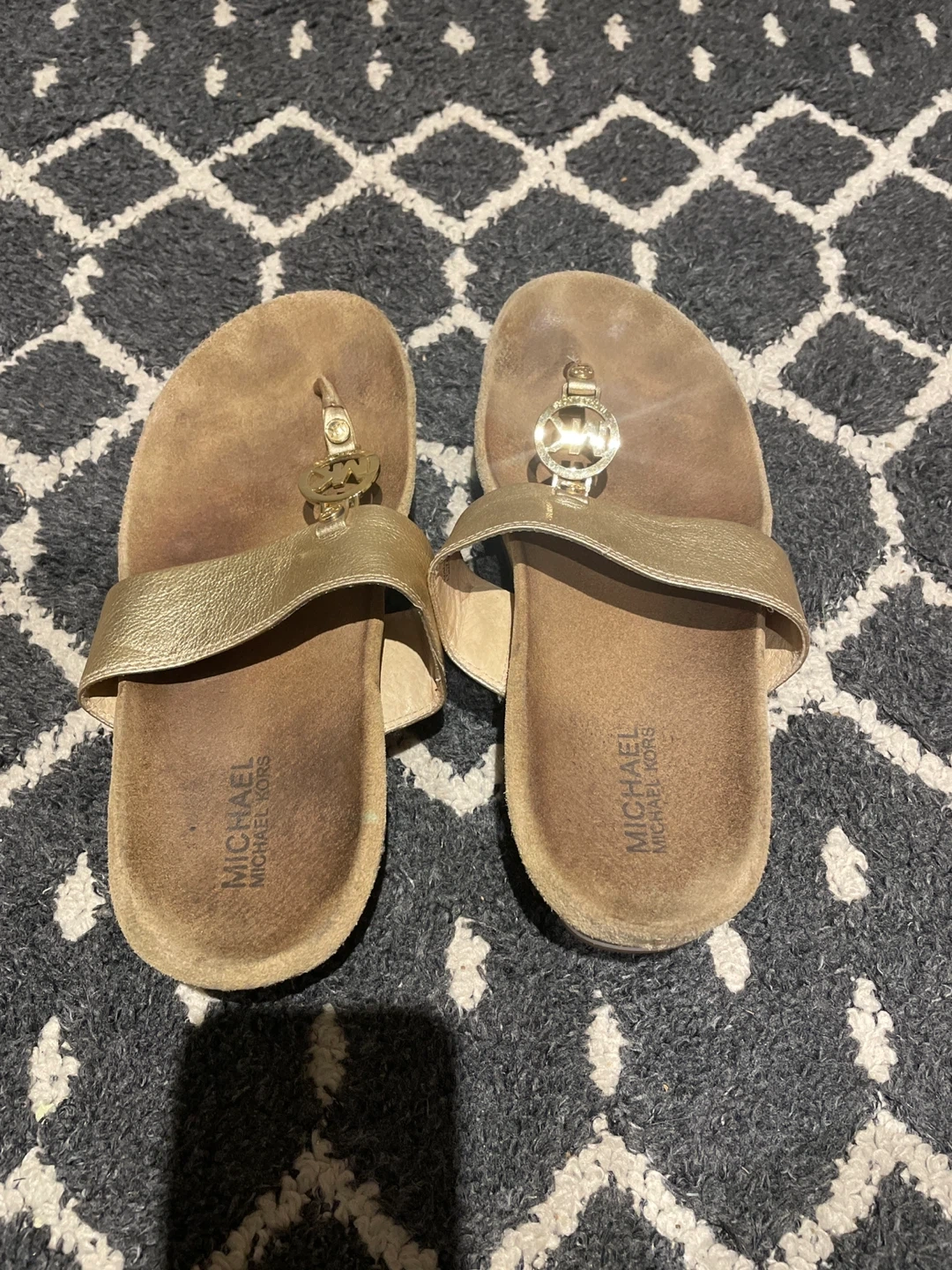 Selling a pair of Michael Kors gold sandals in size 8M! They have a leather upper and rubber sole. Perfect for adding a bit of sparkle to your summer wardrobe!
