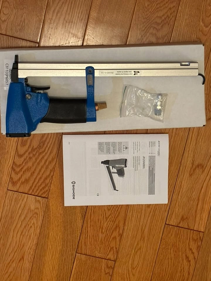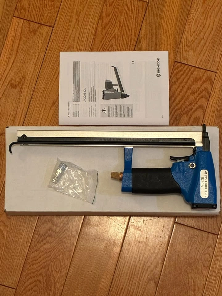 11Josef Kihlberg Pneumatic Stapler, JK20A680L, Brand new Made in Sweden High efficiency. Very fast - up to 30 staples/second (1,700 per minute) Easy use Low noise level Negligible recoil If necessary, automatic operation can be switched off by pushing a button. You can easily switch between single-shot and automatic firing. Weight: 1.2 kg ( 2.6 lbs ) Dimensions: 365 × 43 × 150 mm ( 14.4 x 1.7 x 5.9 in ) Magazine capacity: 286 klammer Staple leg length: 6 - 14 mm ( 1/4 - 9/16 in ) Max. pressure: 7 bar ( 102 psi ) Leg length: 365 mm ( in ) Lubrication: Yes Nose length: 14 mm ( 0.6 in ) Original price: $629CAD Now only: $475CAD