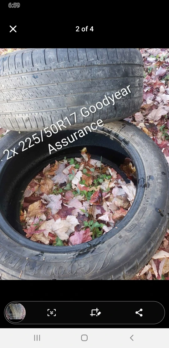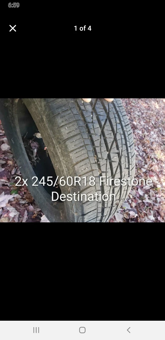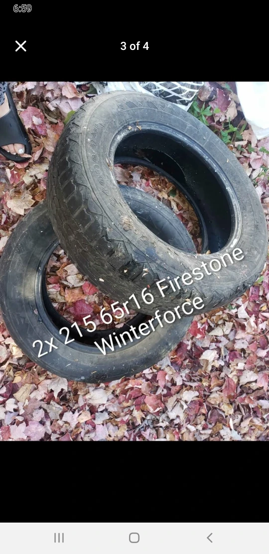 Buy & SellTires: Firestone Winterforce & Goodyear AssuranceTires: Firestone Winterforce & Goodyear Assurance$15Selling two pairs of used tires: - 2x 245/60R18 Firestone Destination - 2x 225/50R17 Goodyear Assurance - 2x 215/65r16 Firestone WinterforceConditionNew0 chats·0 favorites·7 viewsSELLERverifiedCheryl MyshrallNashwaaksis600 reviewsWHERE TO MEETCheck Location