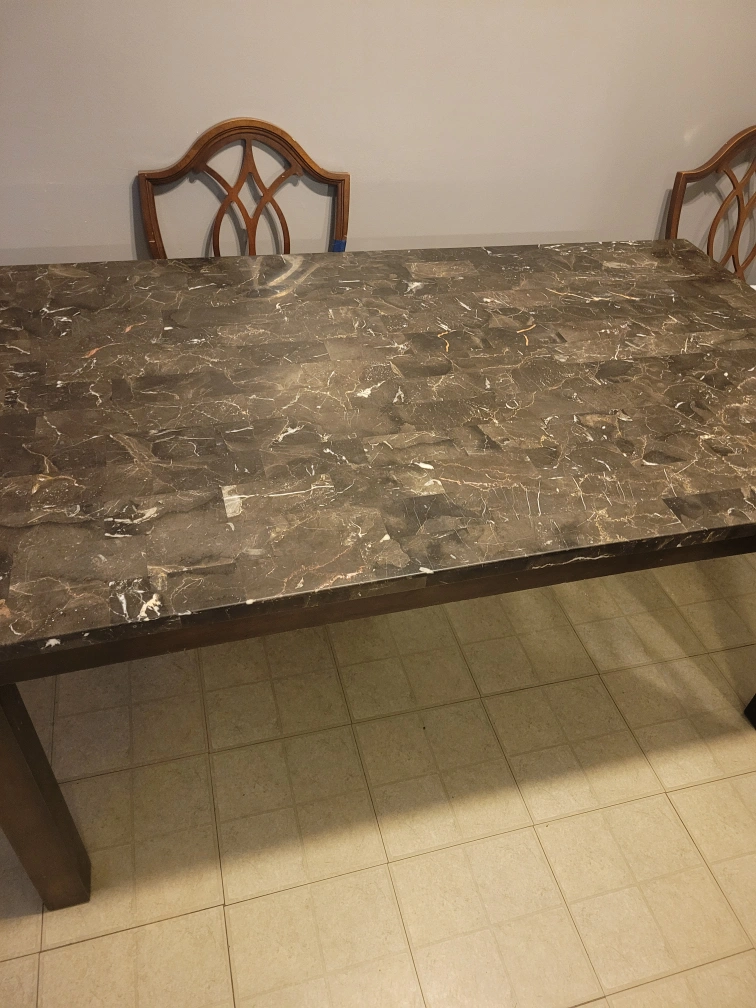 Selling a dining table with a lovely marble-look top. It's a great addition to any dining space and is in good condition. Perfect for family meals or gatherings! No Chairs.