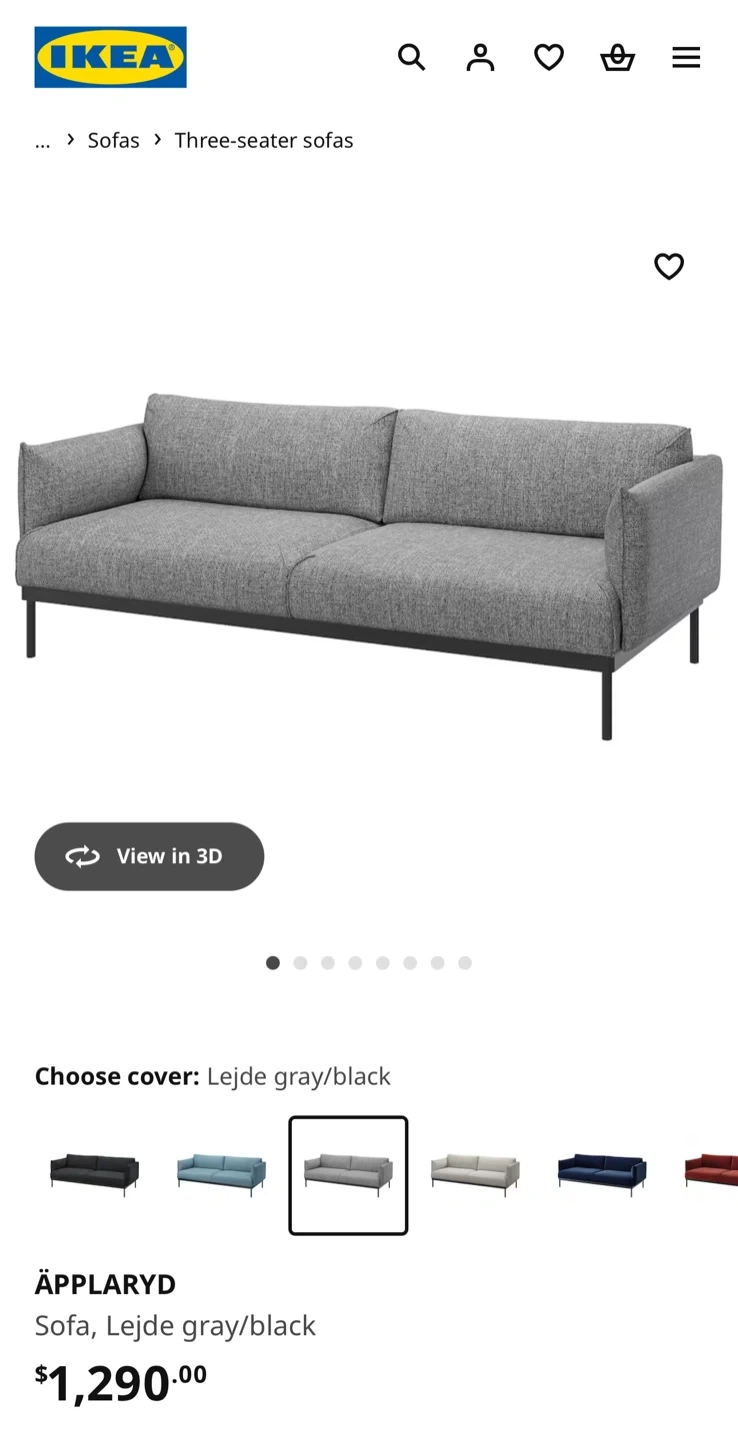 Selling an IKEA ÄPPLARYD sofa in Lejde gray/black! It's a stylish and comfortable three-seater sofa that would look great in any living room. Originally bought for $1,290.00 Plus tax so around $1,457 after tax. Its Brand new and in its original box (not open). Never used. Reason for selling :  doesn’t fit my new place. It can also be used as a sofa bed. Asking for $1,200. Ready for pick up on November 7.