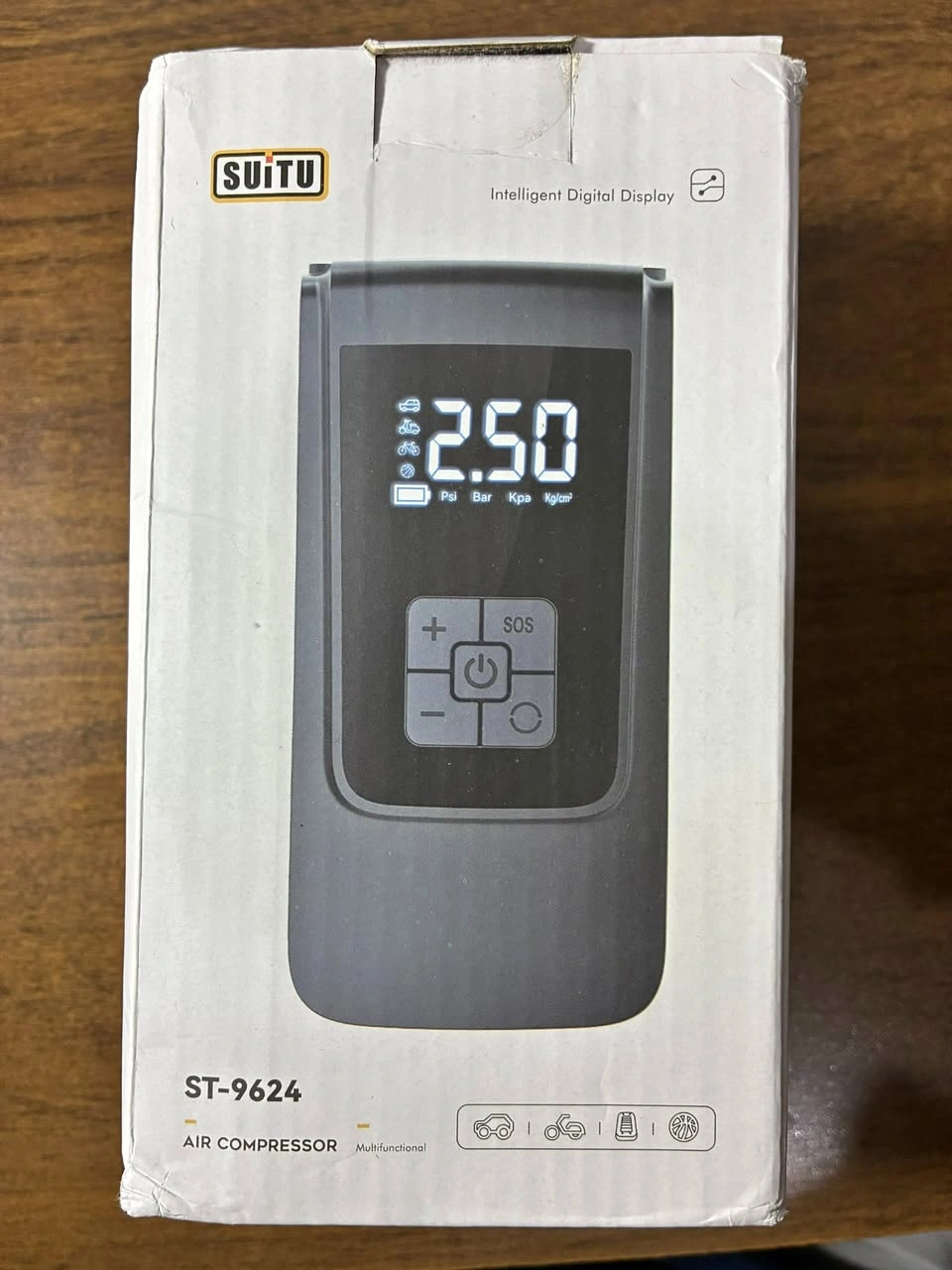 11Suitu ST-9624B Air Compressor: Air pump with intelligent digital display. Max current: 10A Max Air Pressure: 150psi Flow: 30L/min Air Hose Length: 15cm